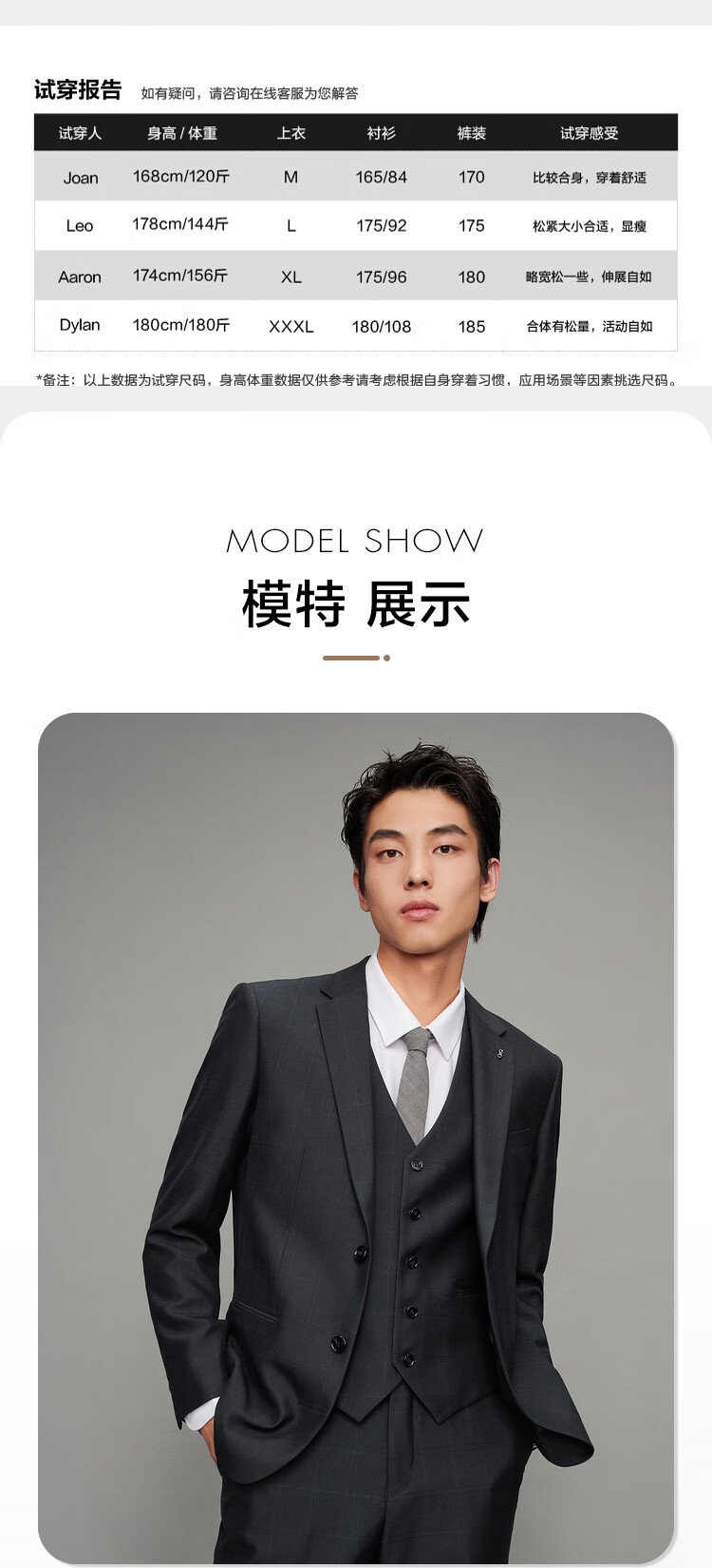 China (cm) 160-165/84-86 165-170 / 88-90 167-172 / 92-96 168-173 / 98-102 170-176 / 106-110