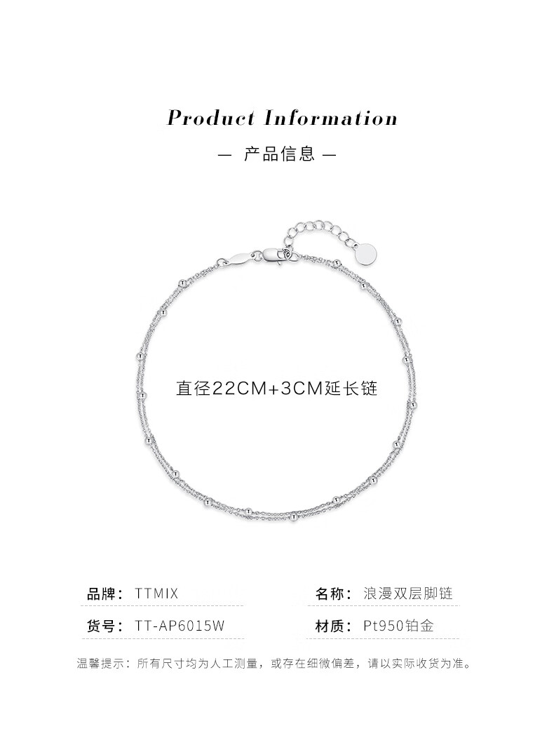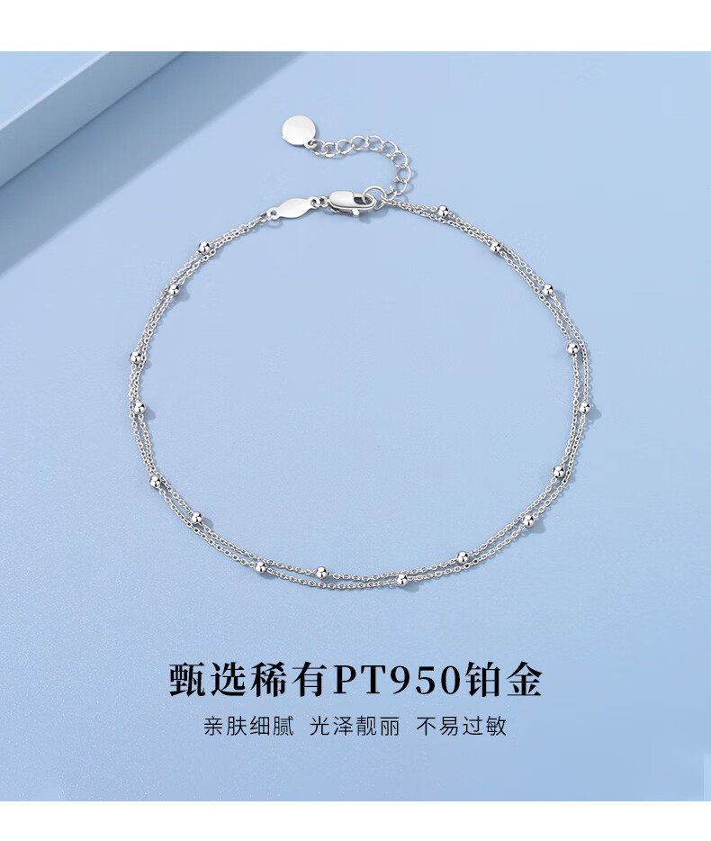 TTMIX platinum anklet women's PT950 round bead O-shaped chain double-layer simple platinum foot accessories summer versatile custom deposit please contact customer service for details