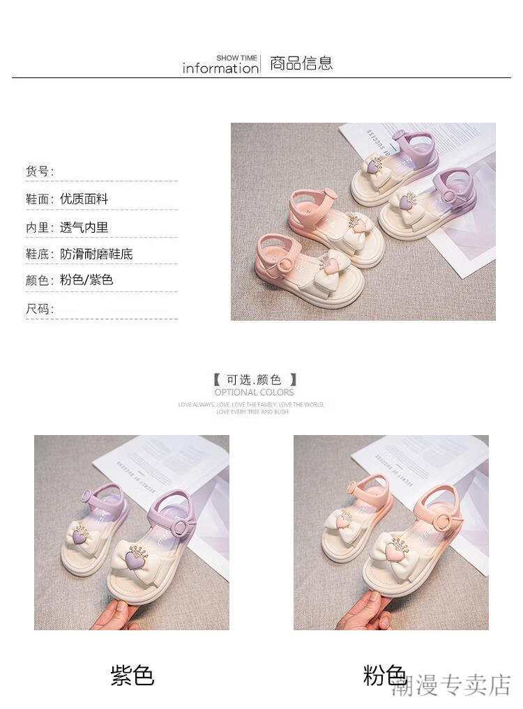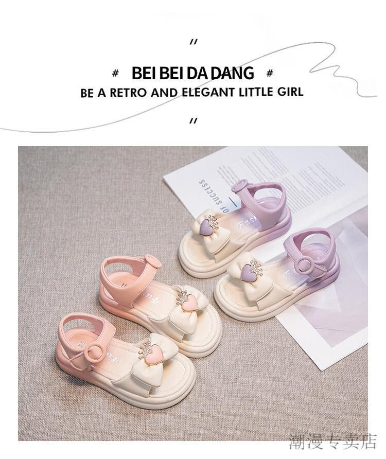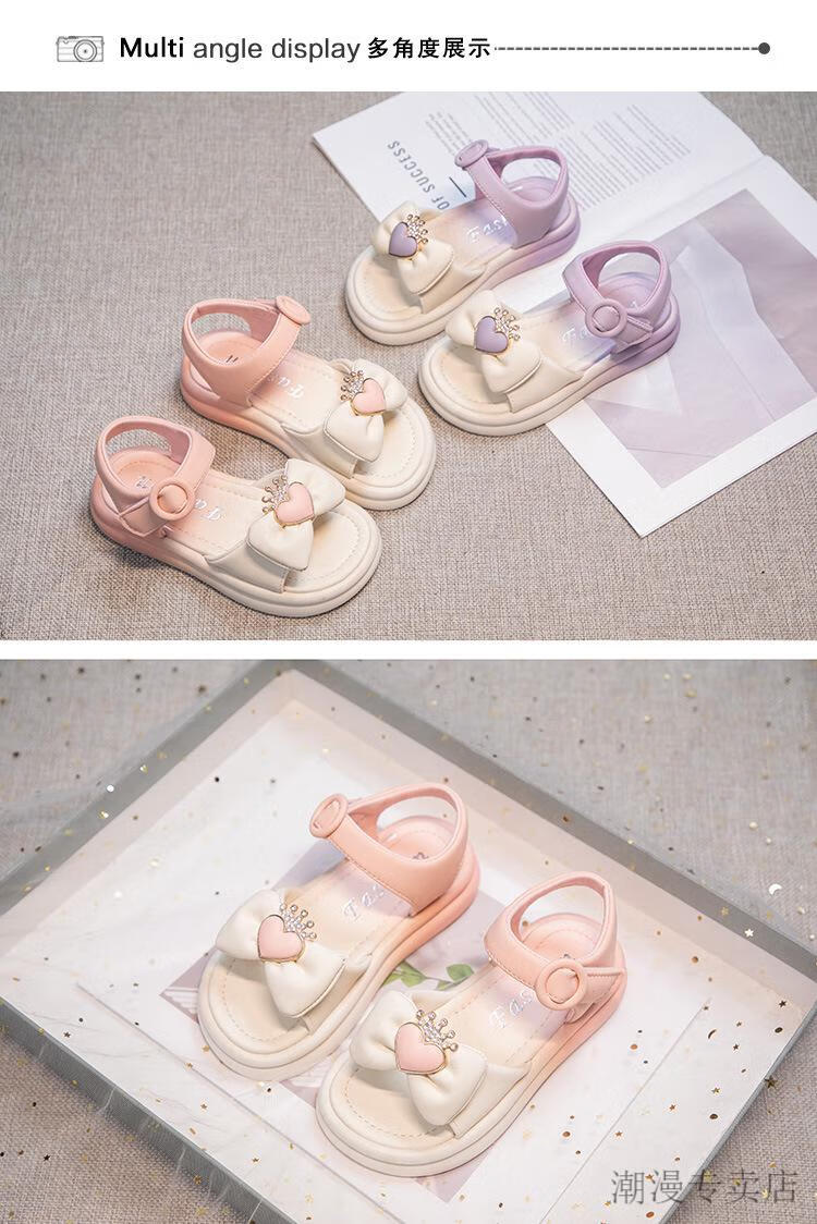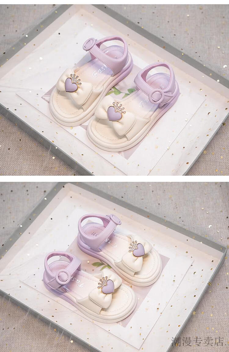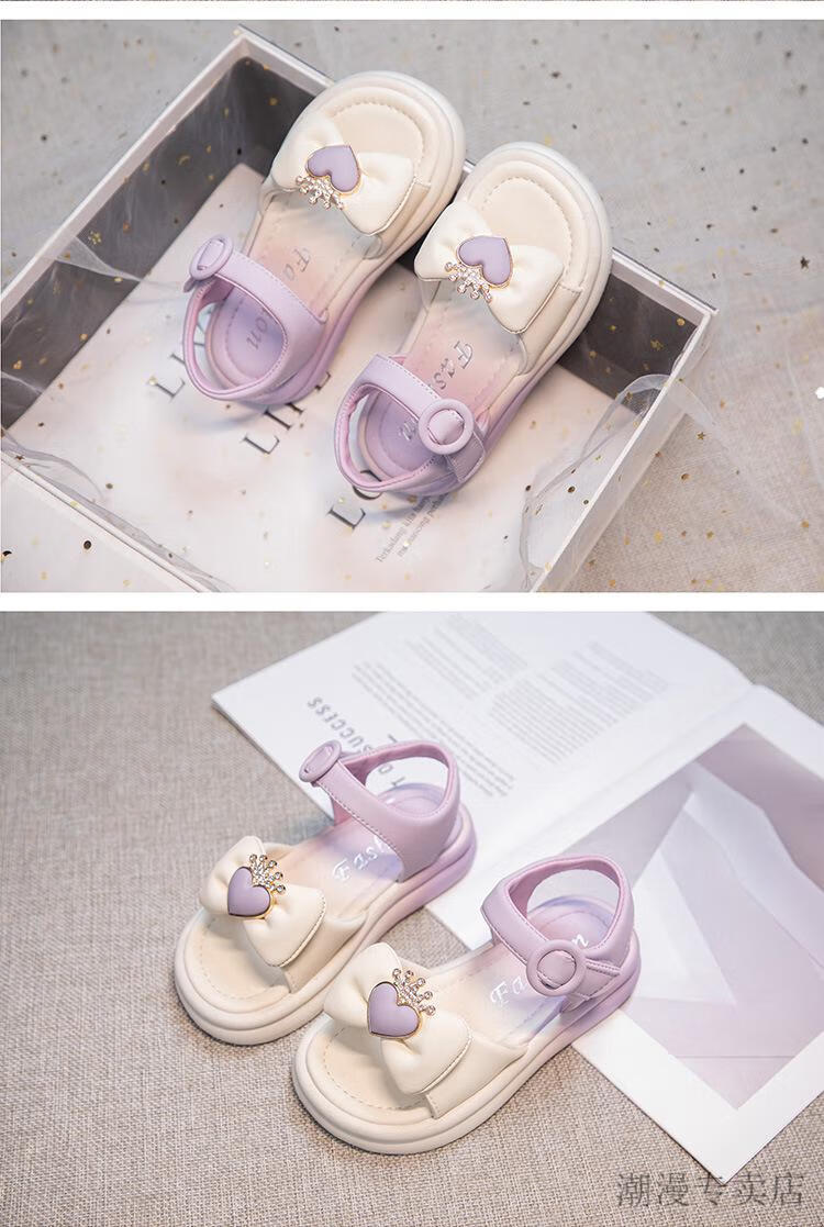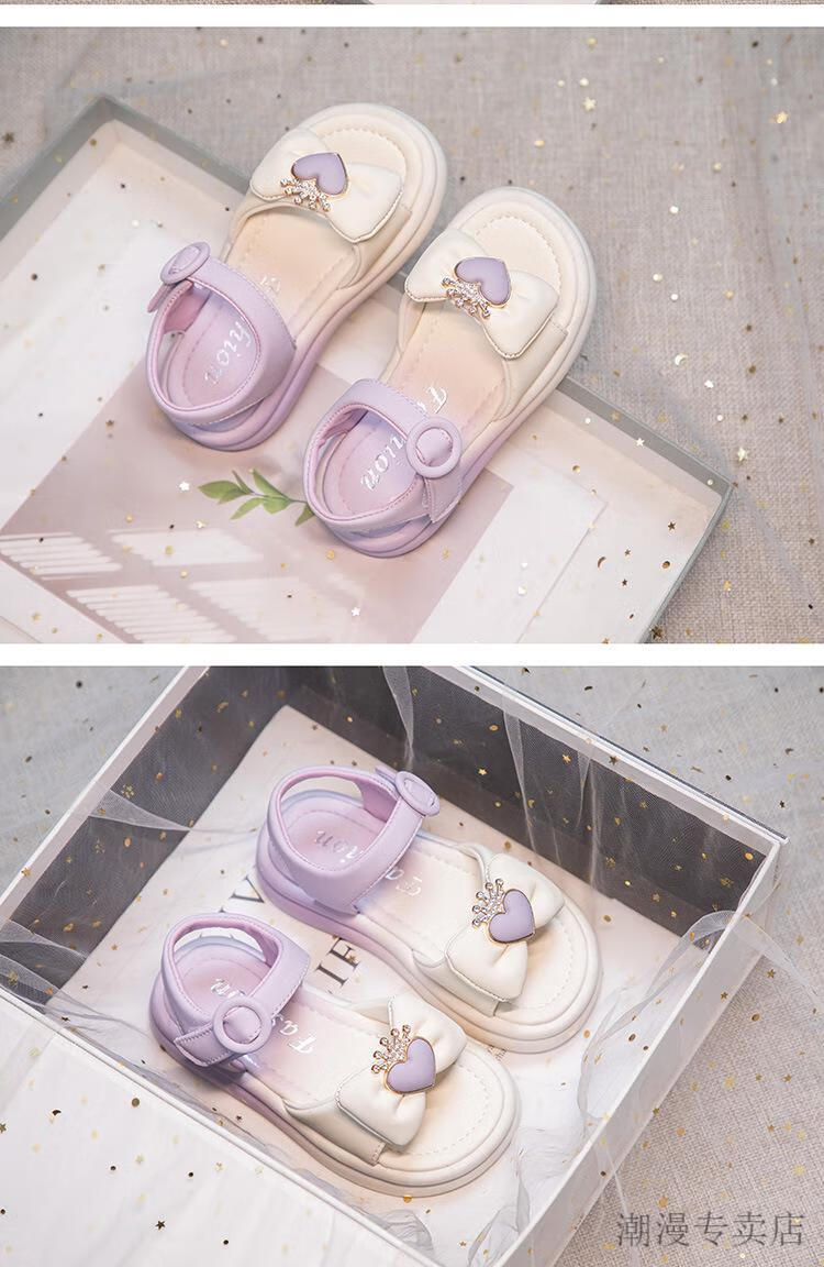 G.duck Children's Sandals Women's Summer Princess Shoes Bow 2024 Summer 7-12 Years Old Girls Little Girls Fashion Princess Sandals Purple 31 Inner Length 19.9cm