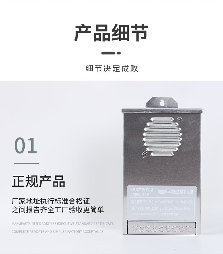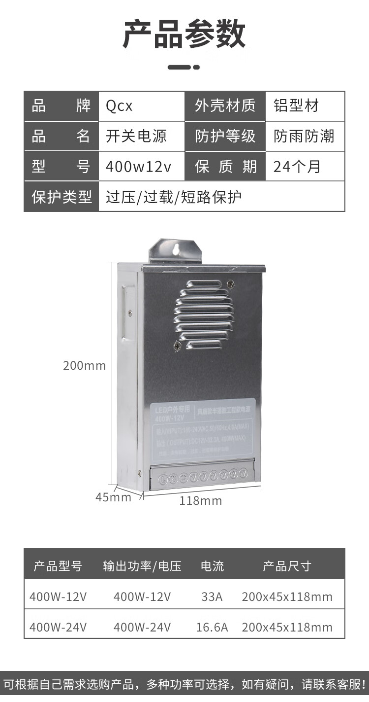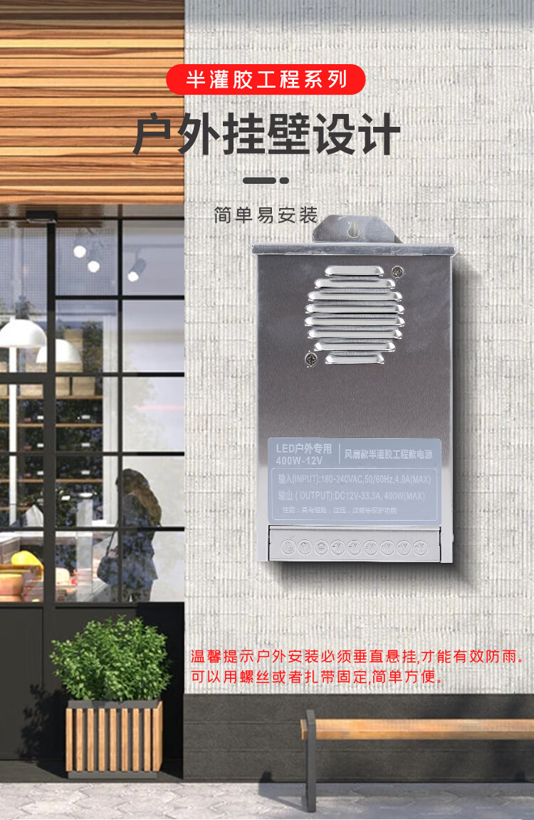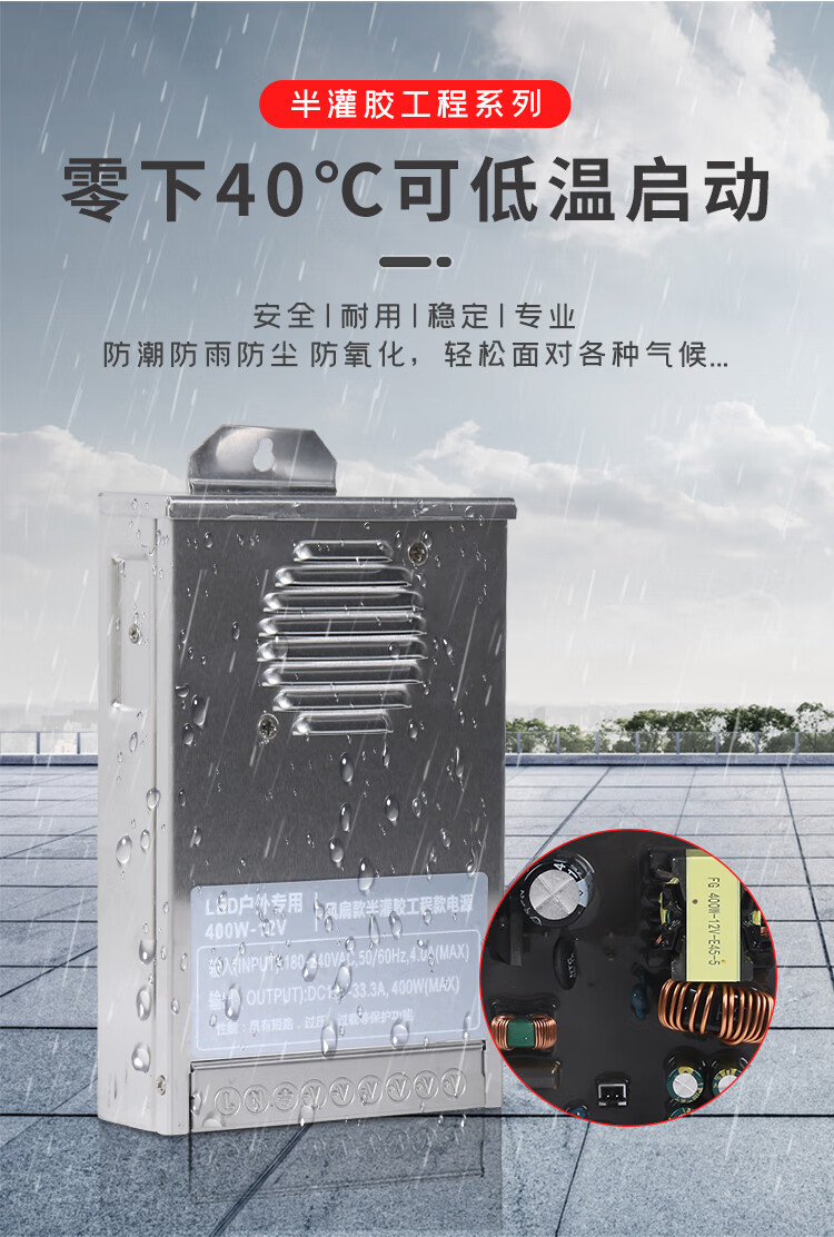 Rainproof power supply 12V33A400W illuminated signboard 5V/24V/30V/36V/48V advertising light box transformer rainproof engineering model 30V 13A 400W