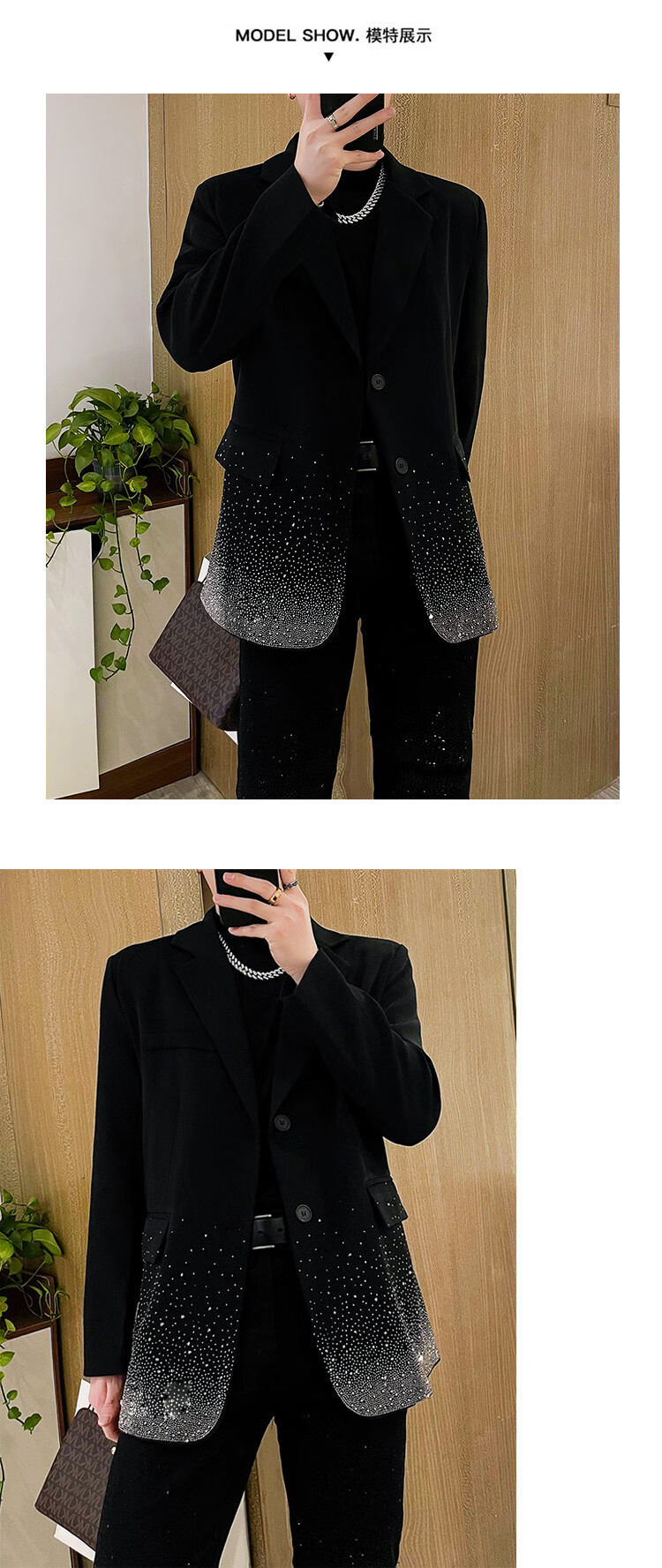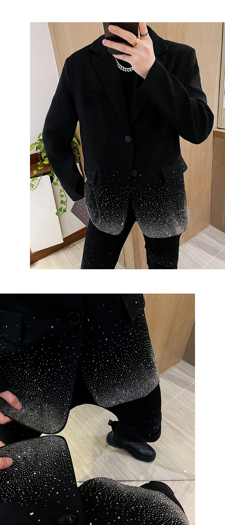An Chuxia's star-studded high-end suit men's fashionable design niche super good-looking top black suit jacket loose black S