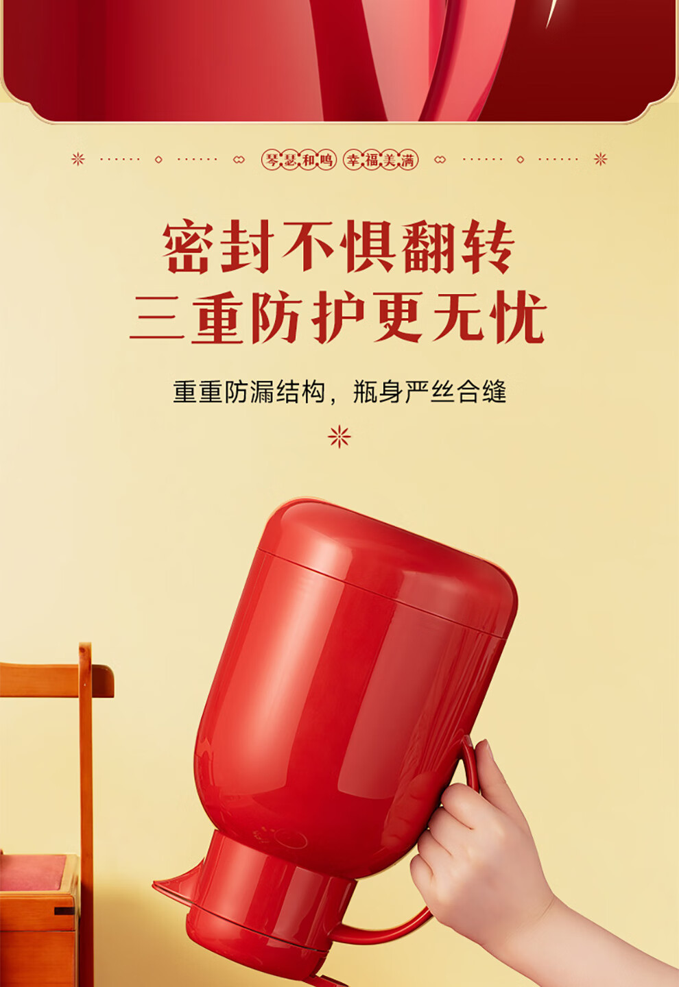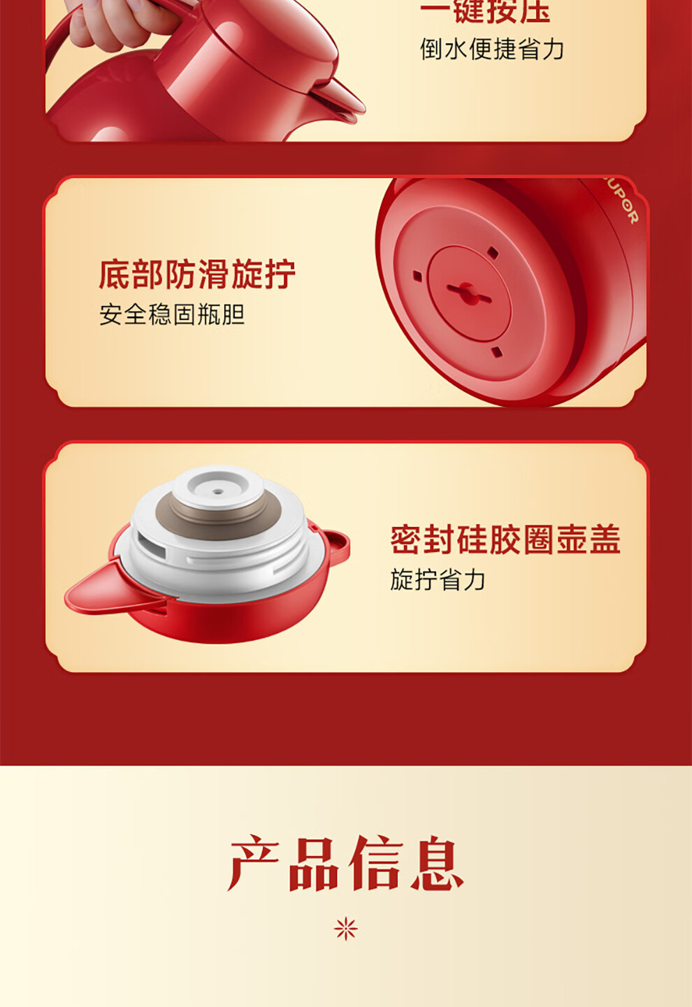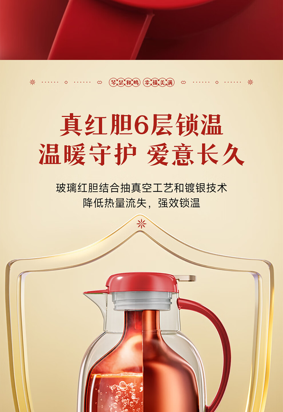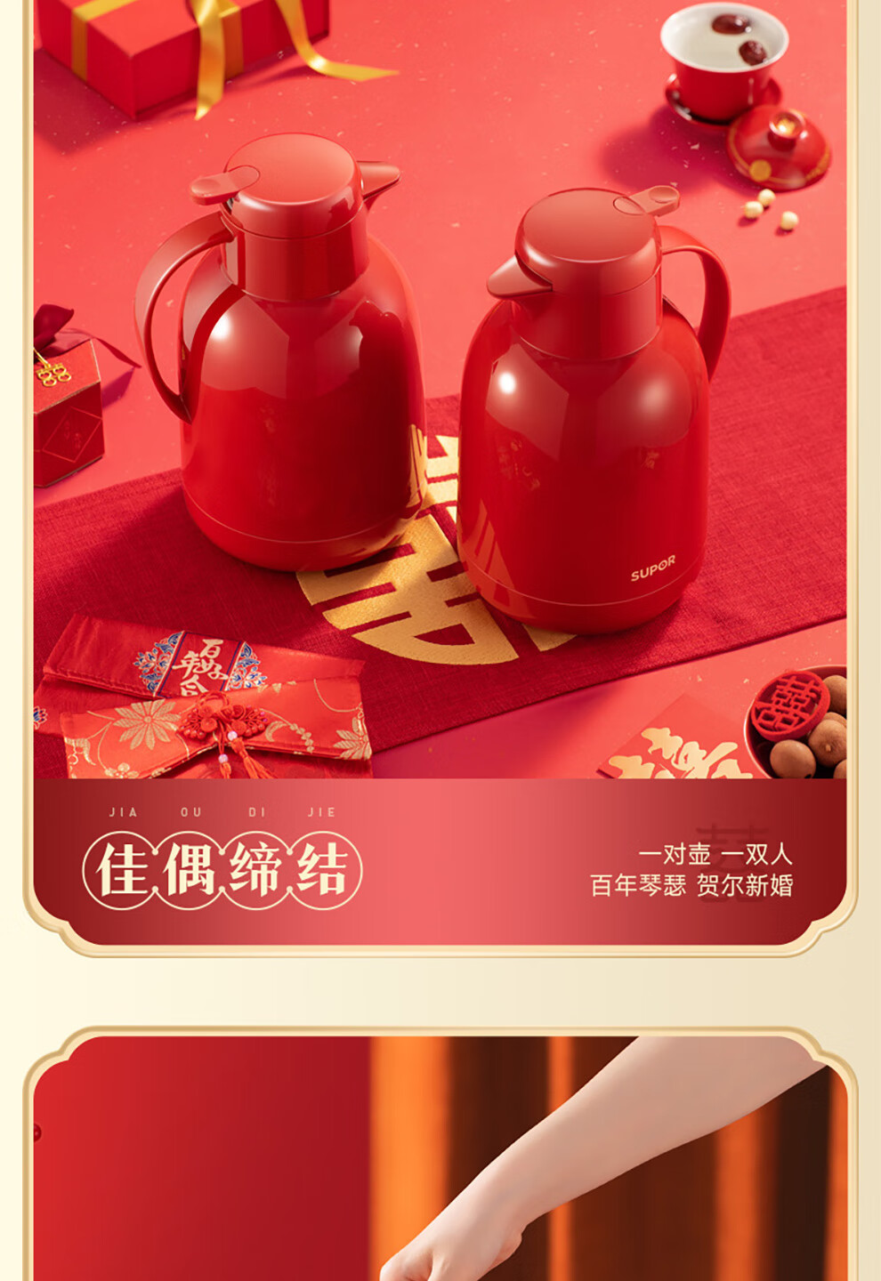 SUPOR thermos kettle wedding kettle red dowry pair thermos kettle household glass liner large capacity thermos bottle carmine 1.7L pair of kettles gift bag + stickers