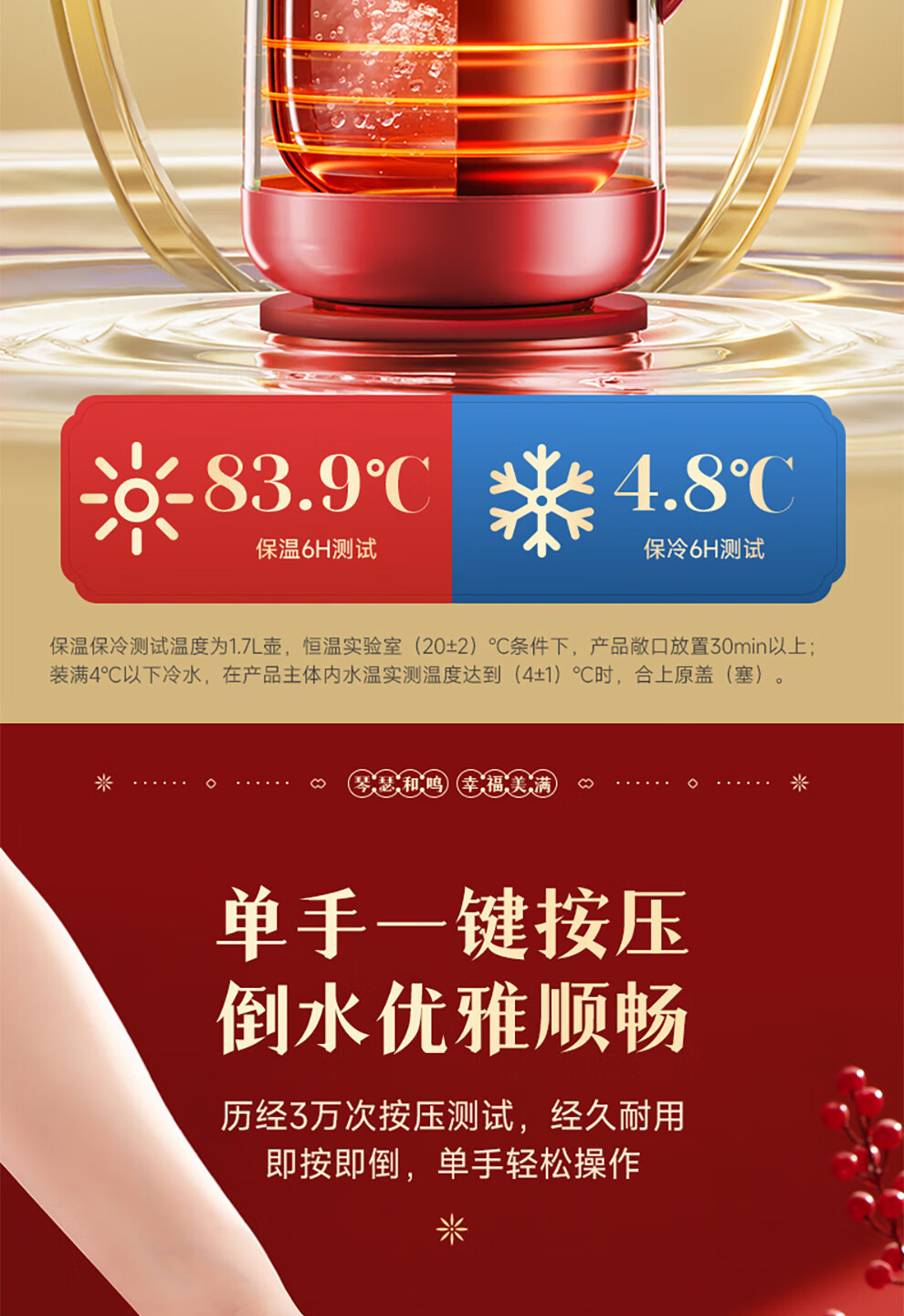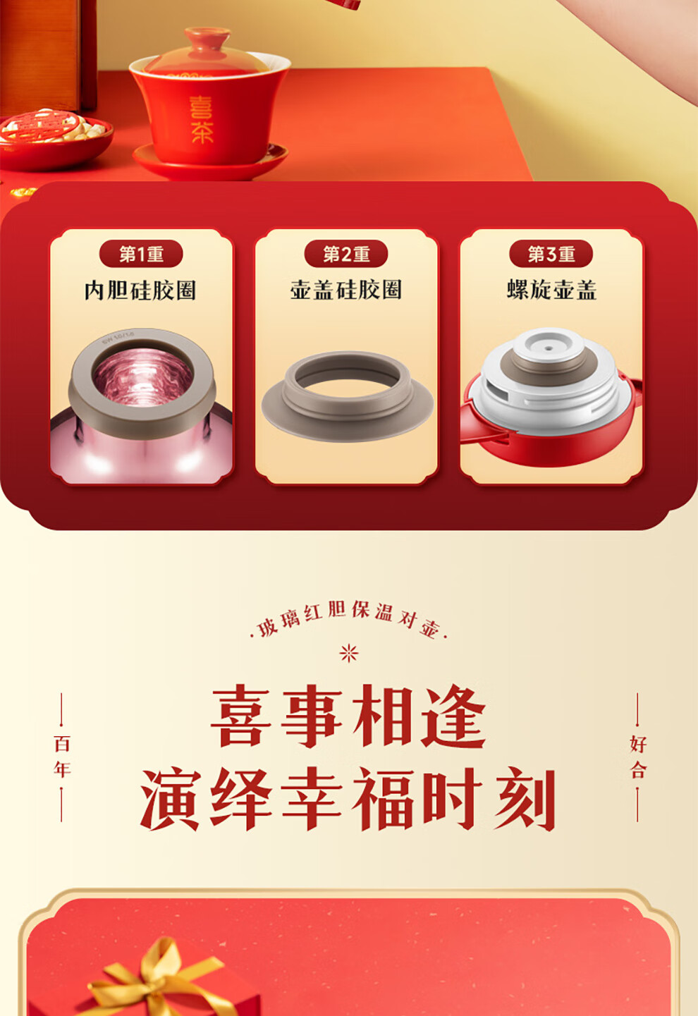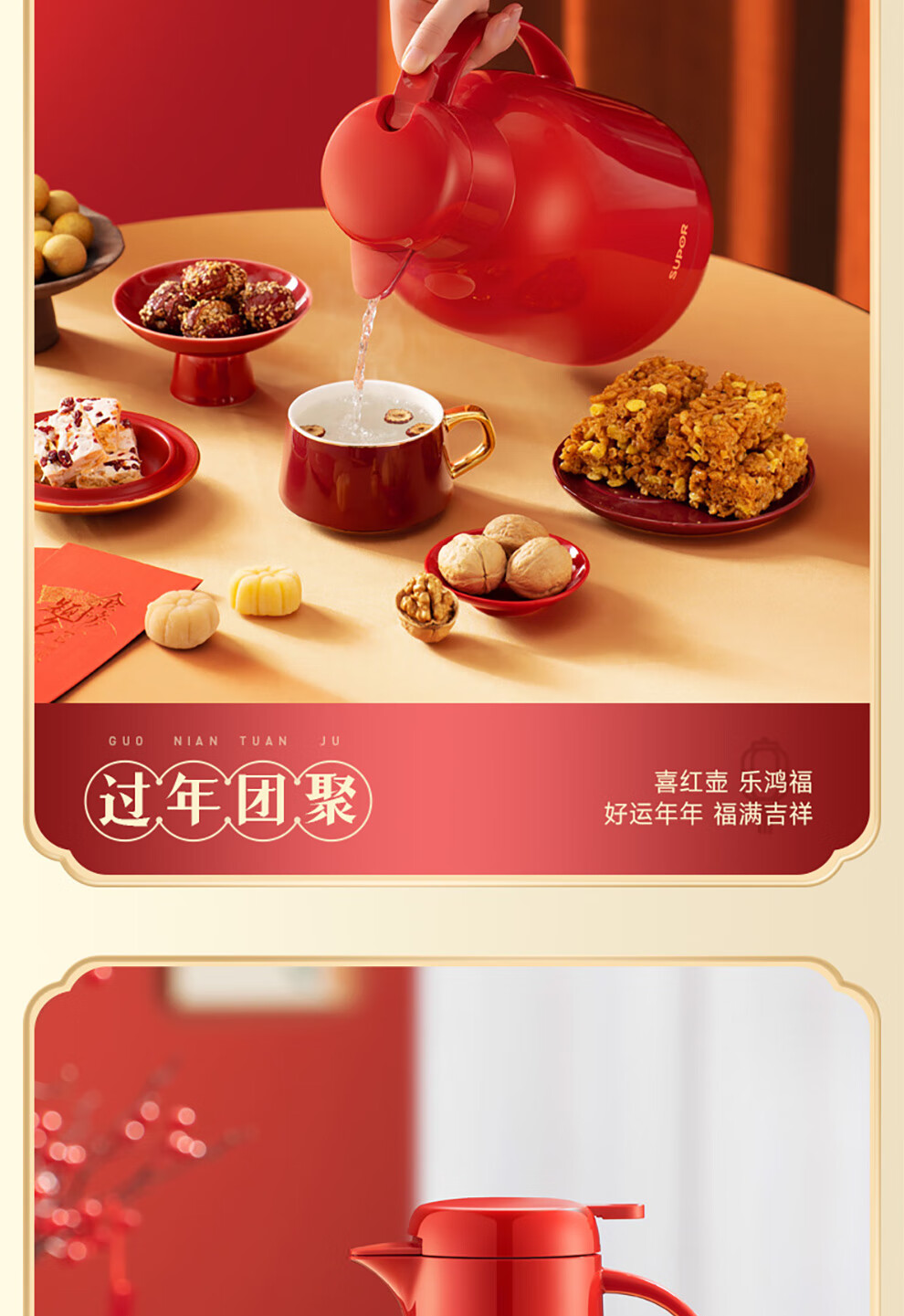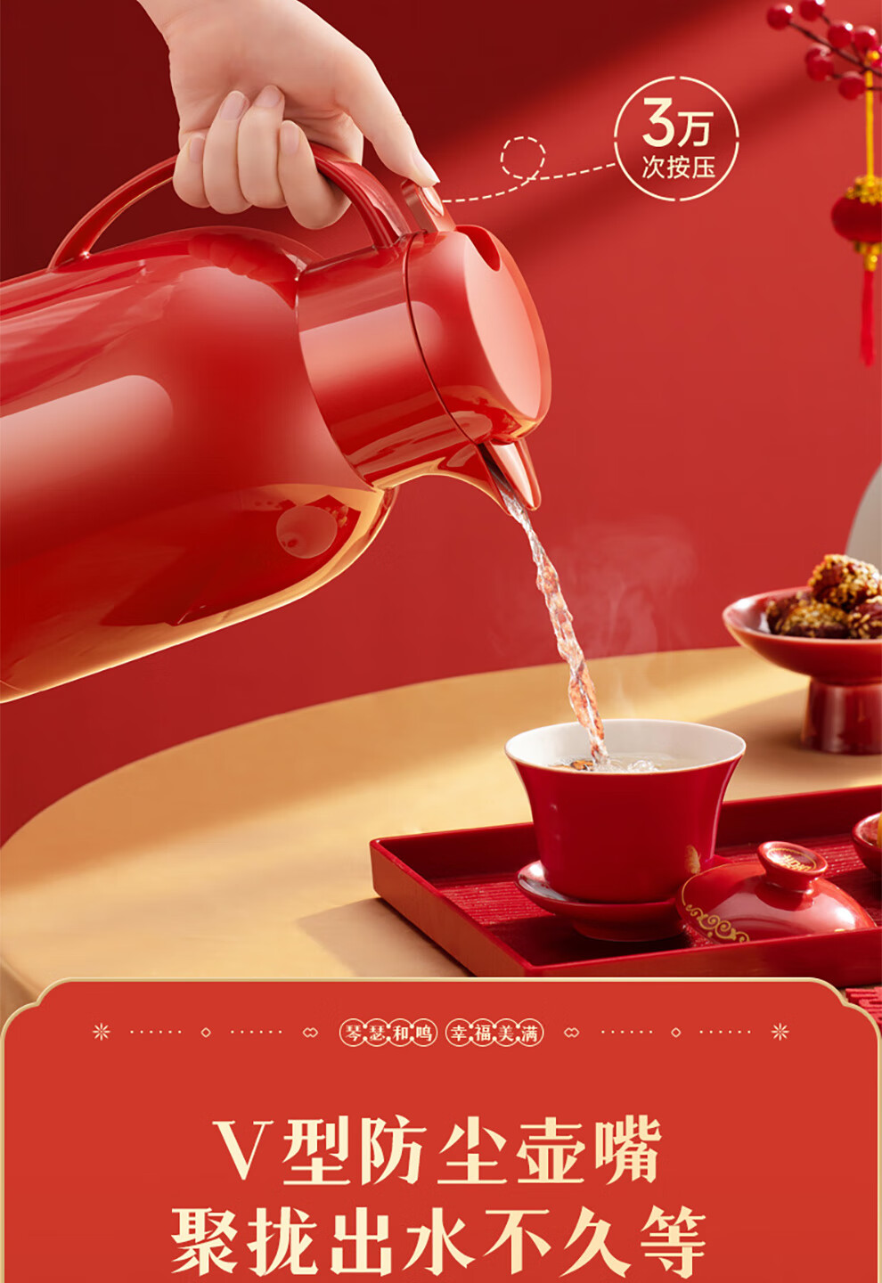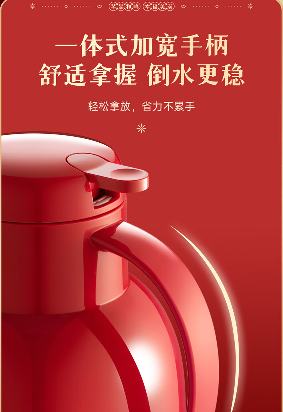 SUPOR thermos kettle wedding kettle red dowry pair thermos kettle household glass liner large capacity thermos bottle carmine 1.7L pair of kettles gift bag + stickers