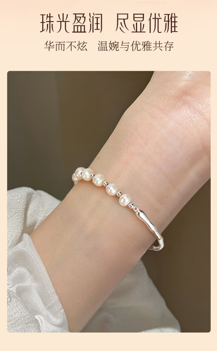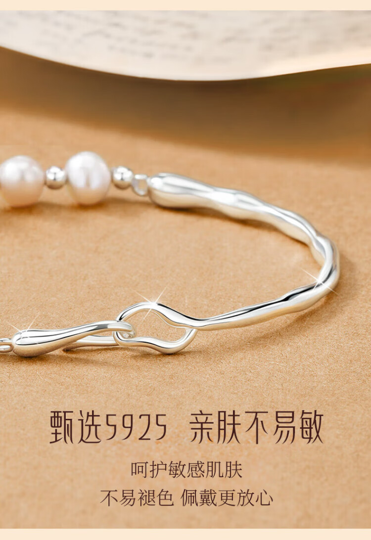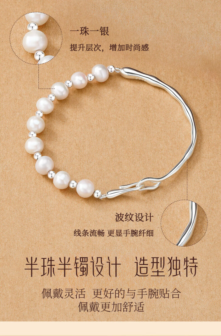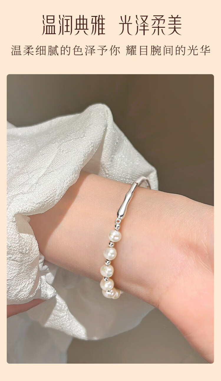 Chinese Gold Pearl Silver Bracelet Girls Half Bracelet Silver Bracelet Silver Bracelet Women's Bracelet Birthday Gift for Girlfriend and Wife Freshwater Pearl Half Bracelet + Chinese Gold Exclusive Gift Box
