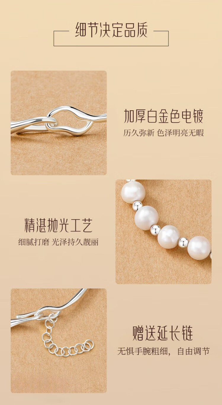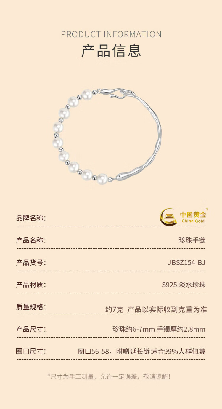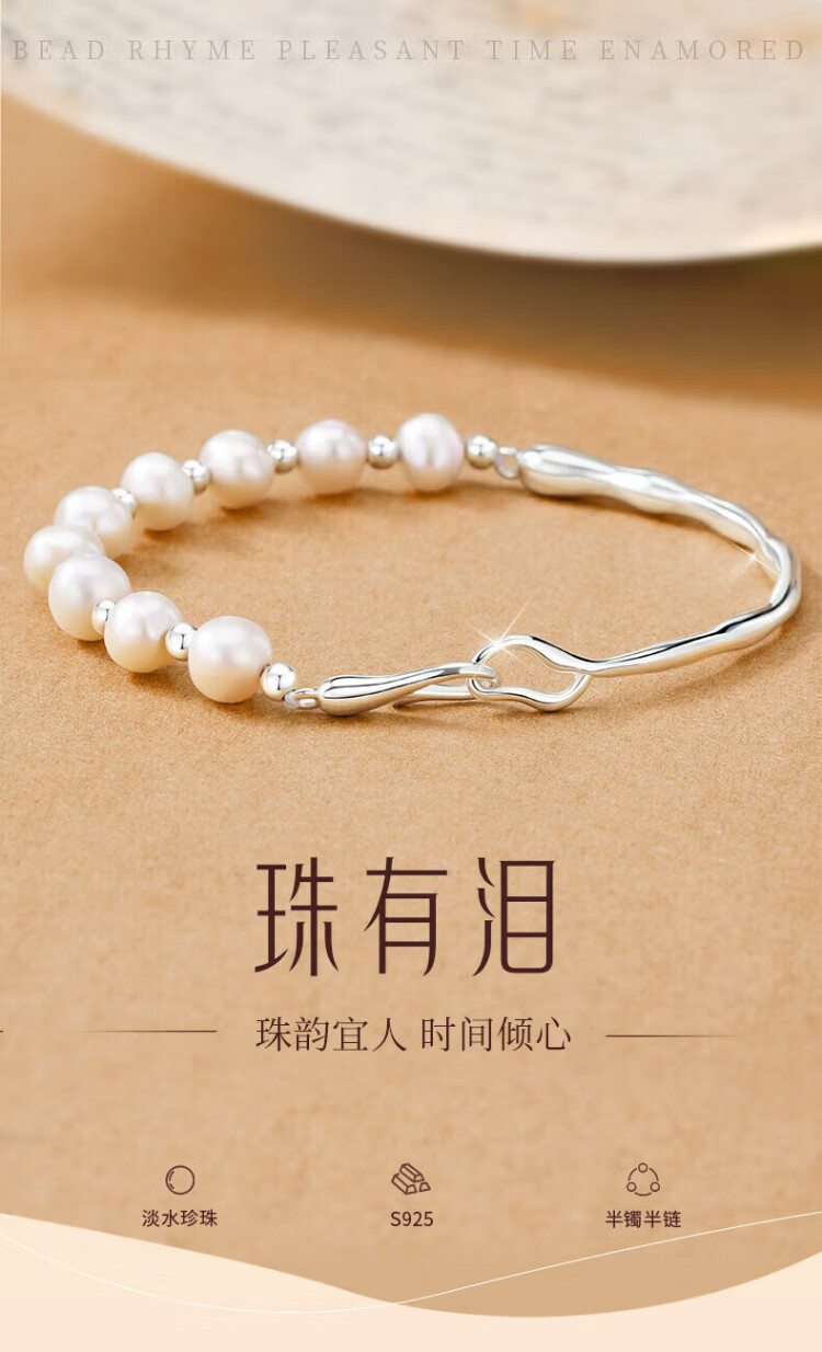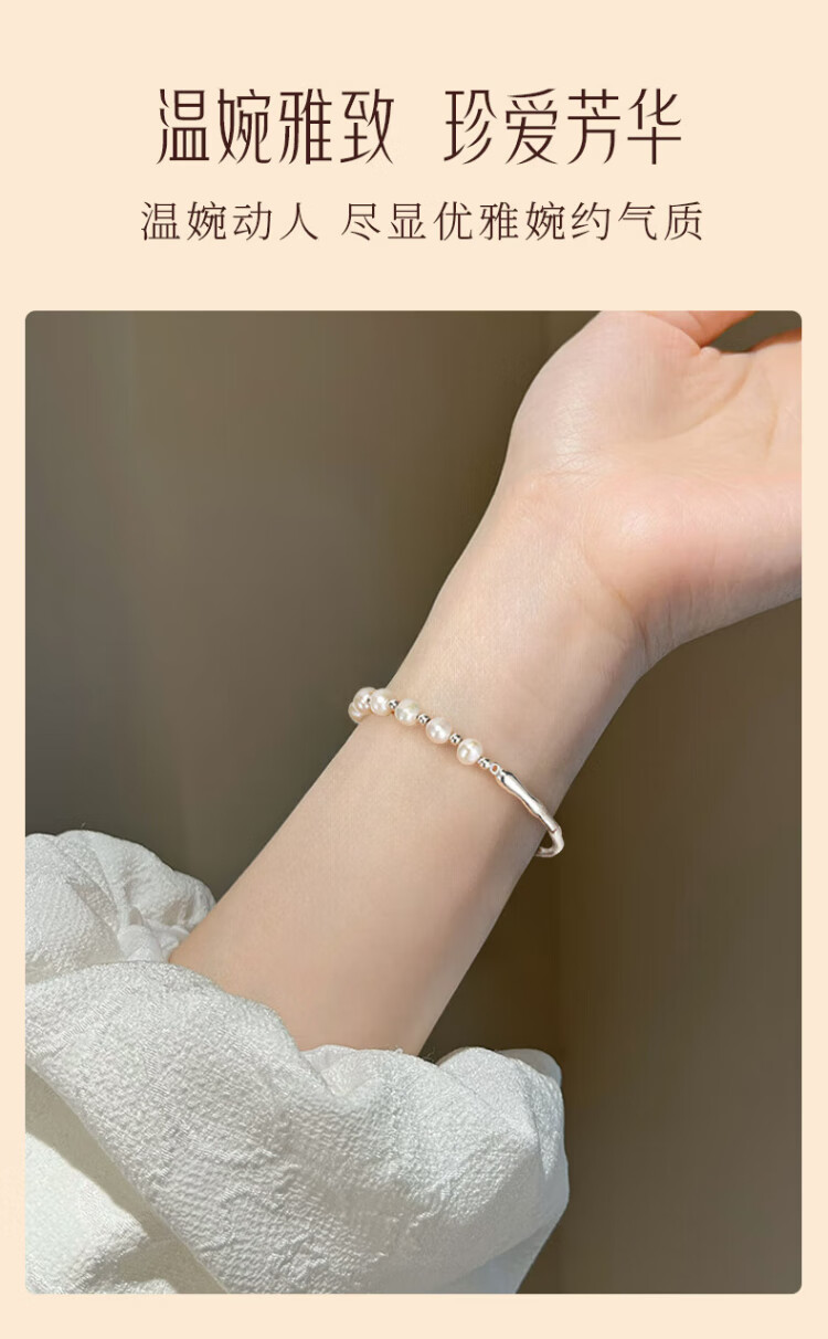 Chinese Gold Pearl Silver Bracelet Girls Half Bracelet Silver Bracelet Silver Bracelet Women's Bracelet Birthday Gift for Girlfriend and Wife Freshwater Pearl Half Bracelet + Chinese Gold Exclusive Gift Box