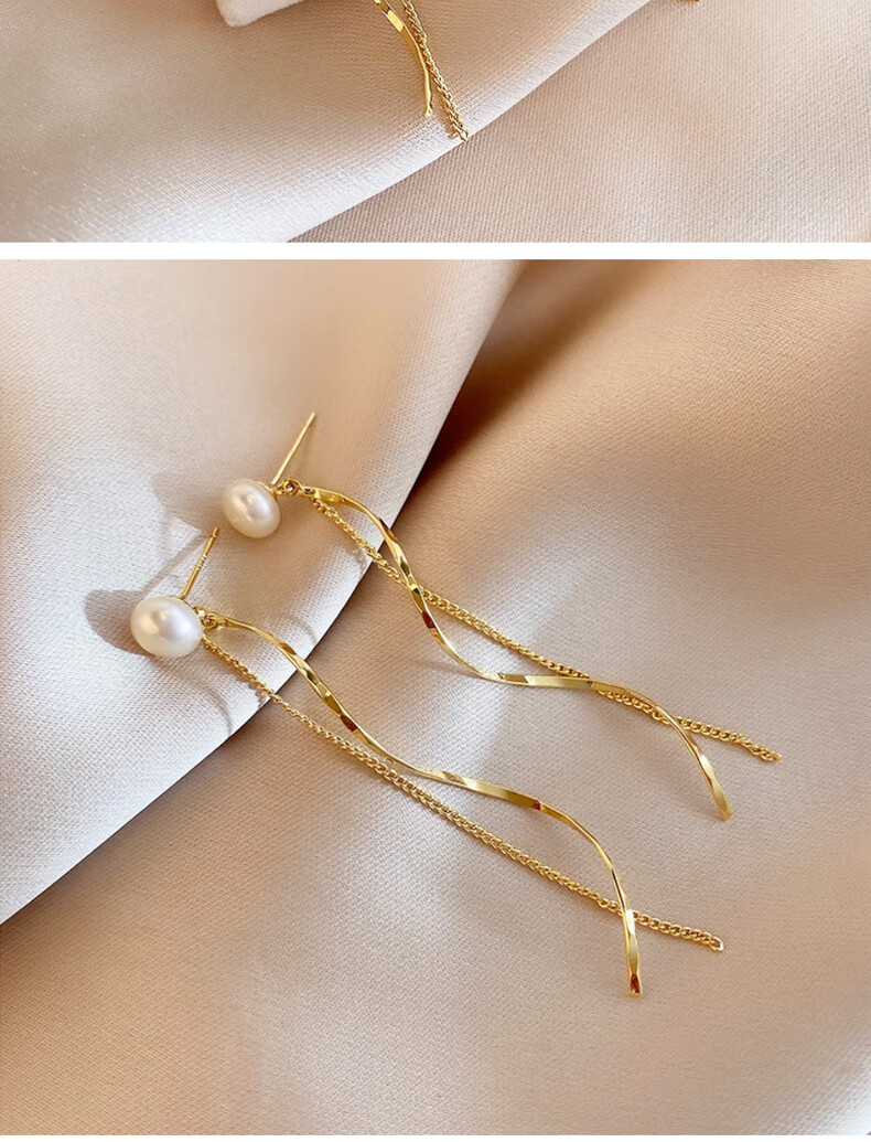 The Story of Core Luxury Rose Liu Yifei's same style earrings for women, elegant earrings, artificial pearl long tassel earrings, earrings, earrings