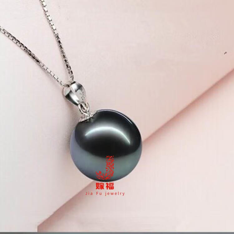 Fat Donglai's same style Tahitian black pearl pendant, natural sea water powder, 925 silver, perfect round glare, black, slightly green in black, 9-10mm x 45cm