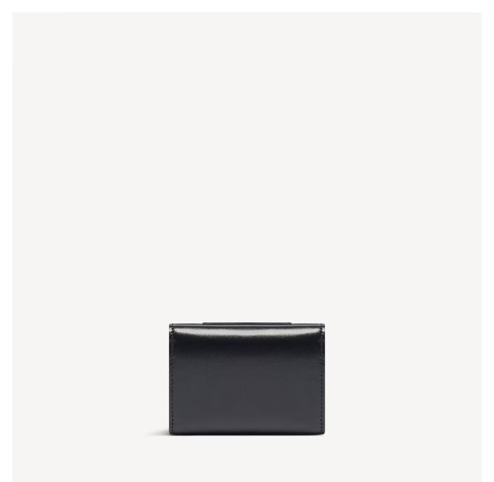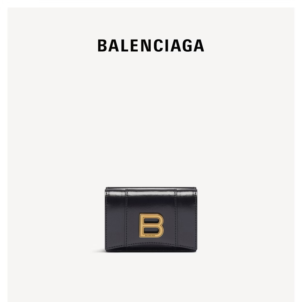 BALENCIAGA HOURGLASS Women's Black Smooth Calf Leather Flip Mini Wallet Black Mini