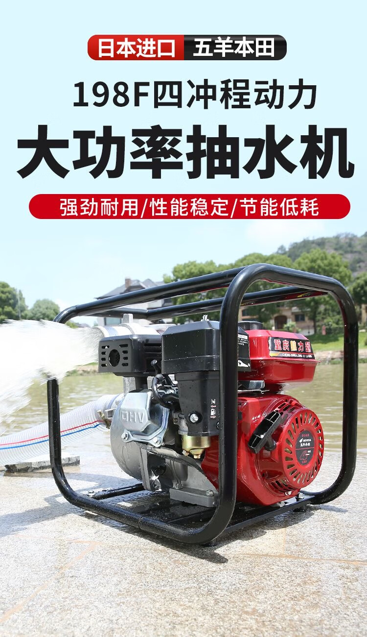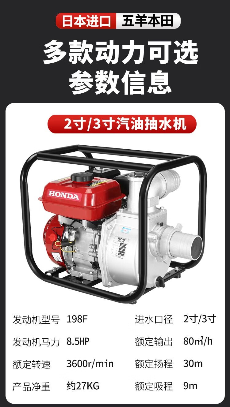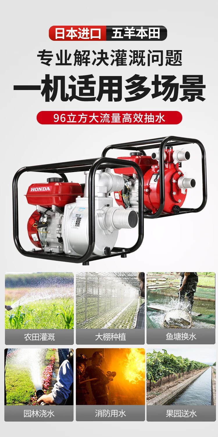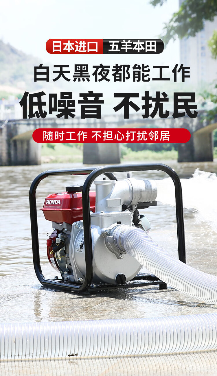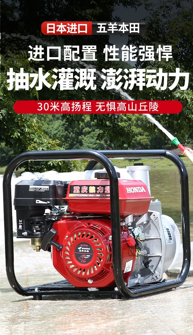 Honda imported Wuyang Honda water pump four-stroke gasoline water pump agricultural high-pressure irrigation household small high-lift pump high-explosion double impeller 2 inches 3 meters in 50 meters out