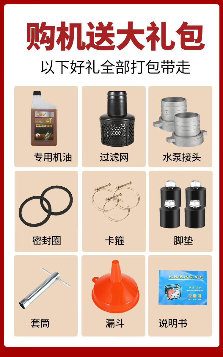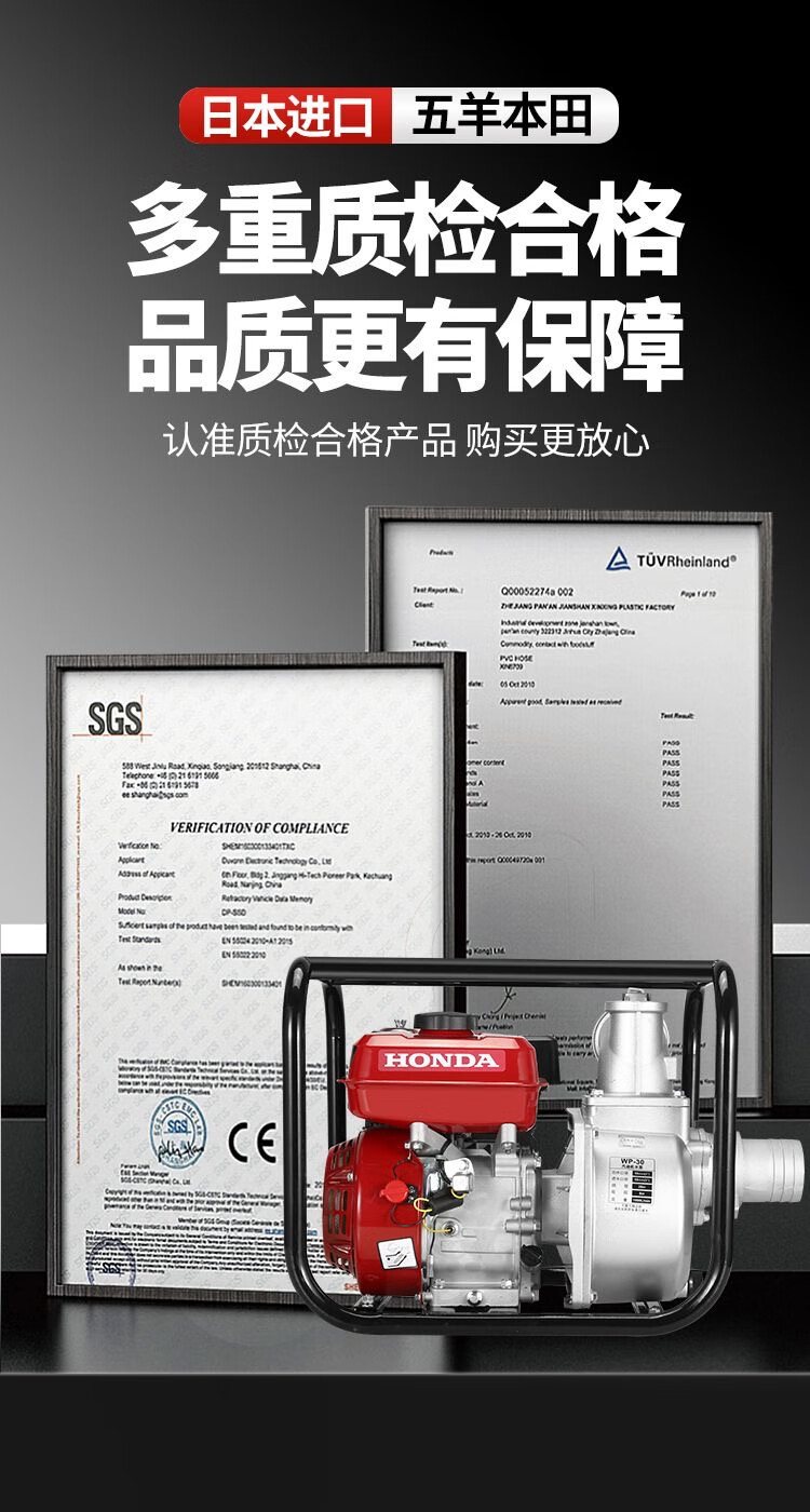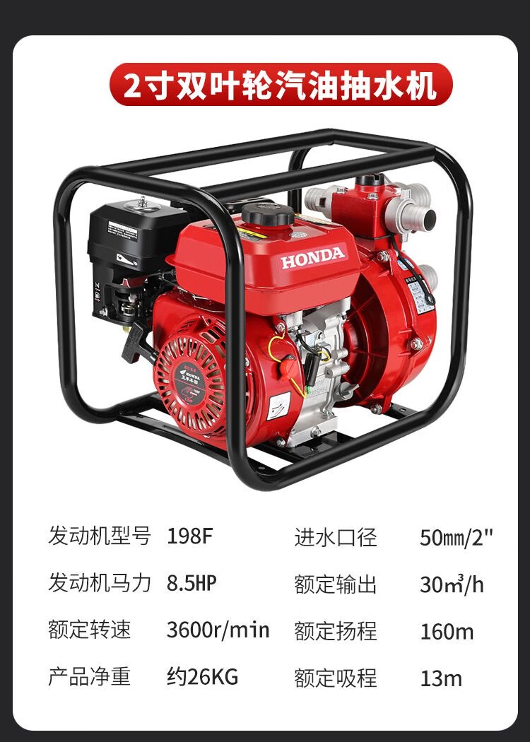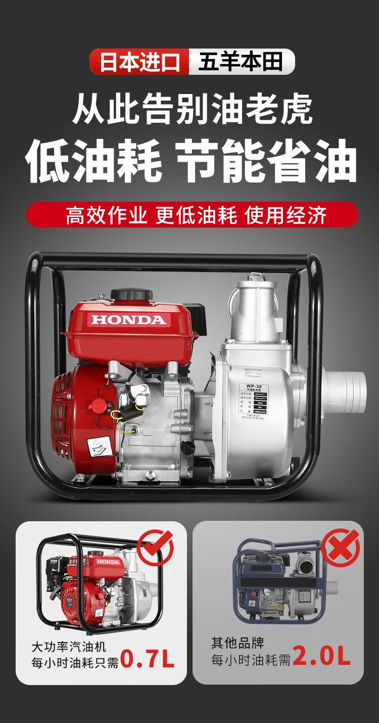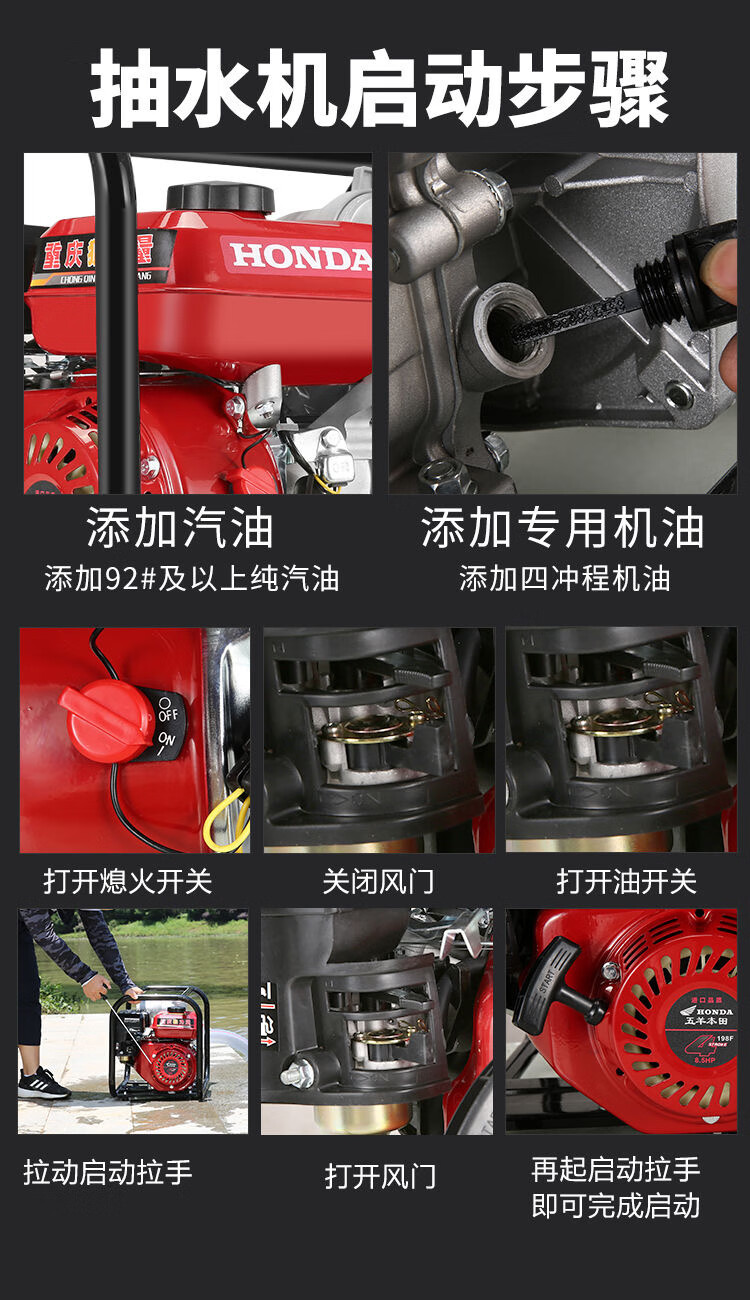 Honda imported Wuyang Honda water pump four-stroke gasoline water pump agricultural high-pressure irrigation household small high-lift pump high-explosion double impeller 2 inches 3 meters in 50 meters out