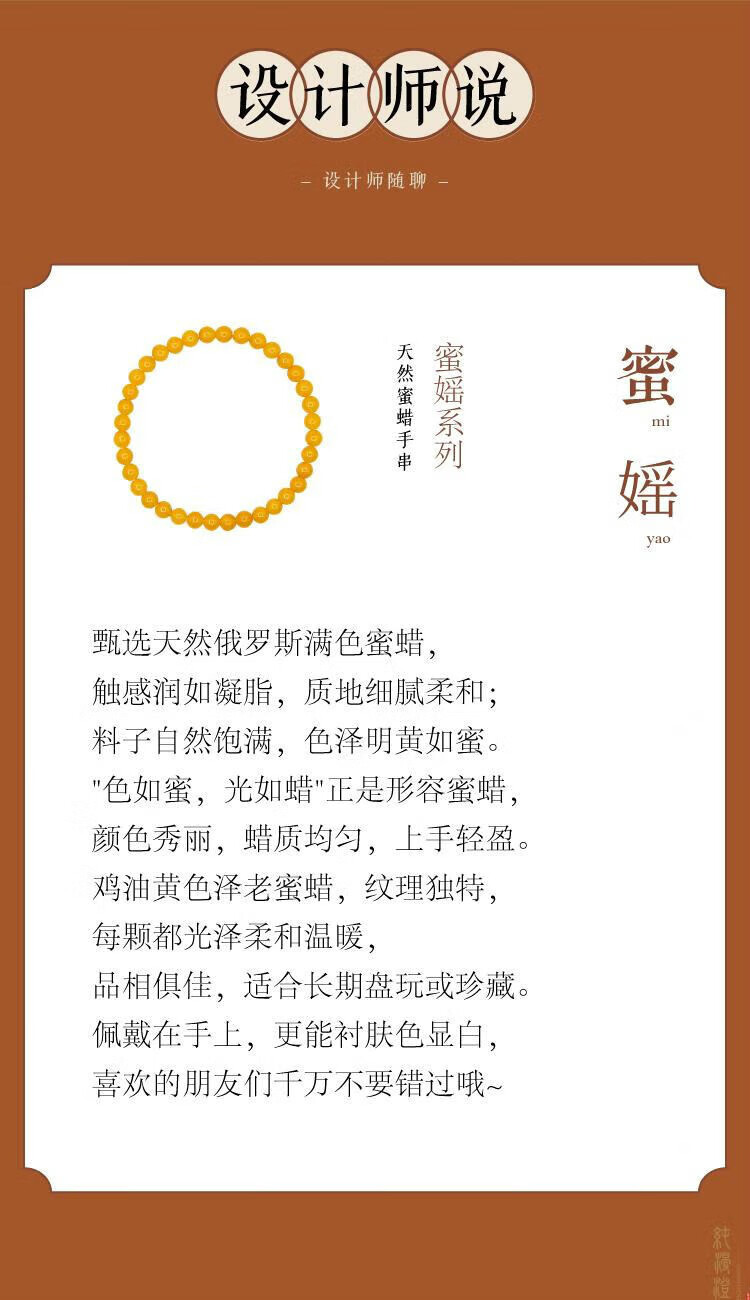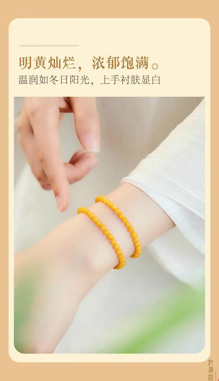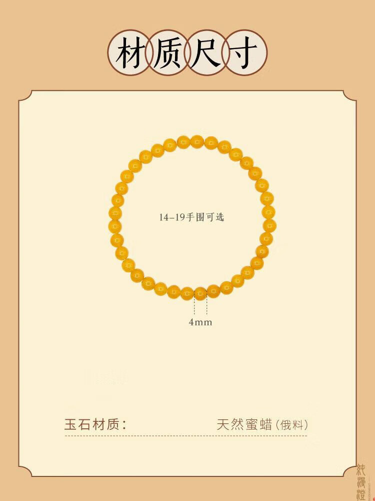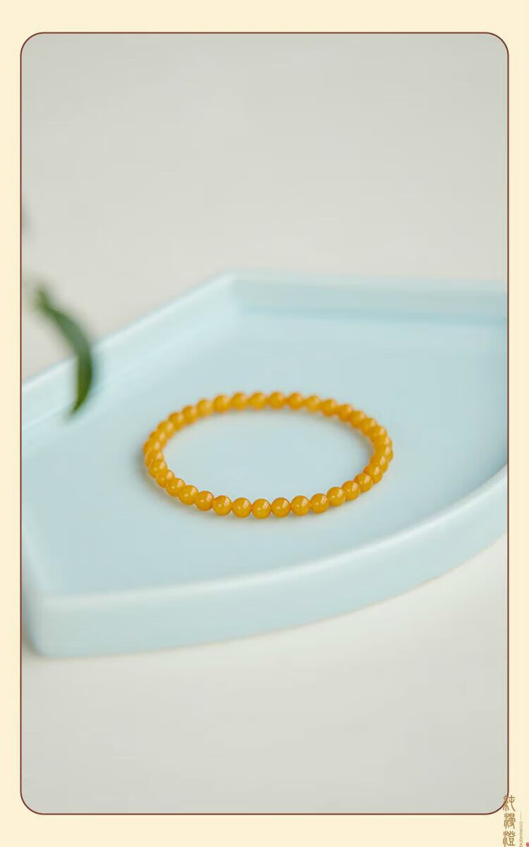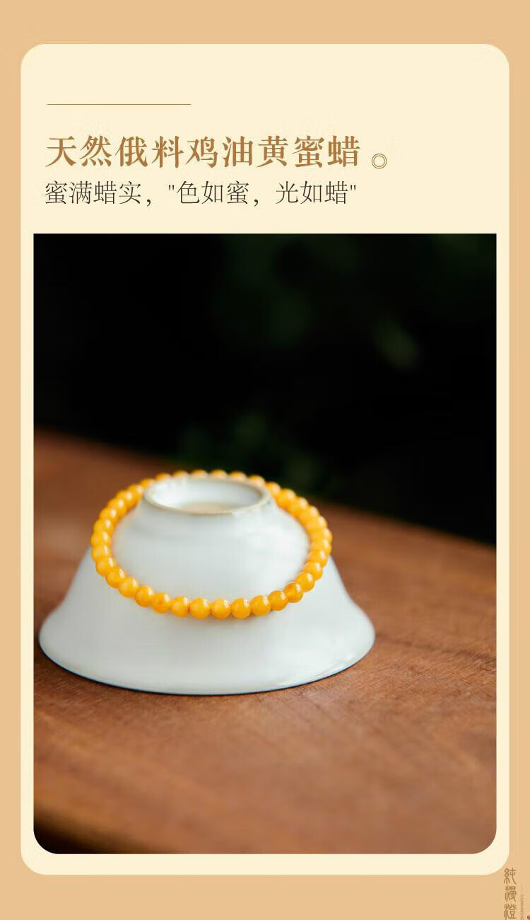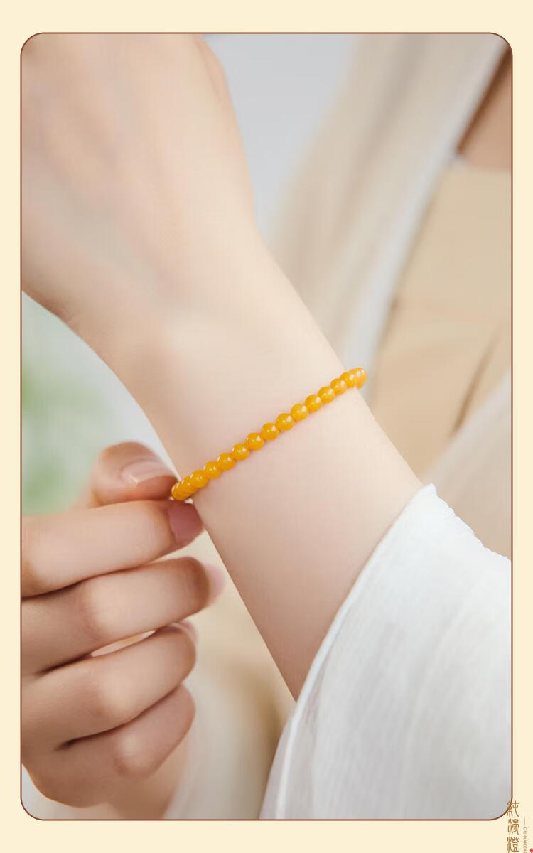 Pure beeswax bracelet for women, natural chicken fat yellow amber raw stone gem plate, light luxury niche exquisite bracelet honey 4mm collection grade chicken fat yellow beeswax 14-15cm