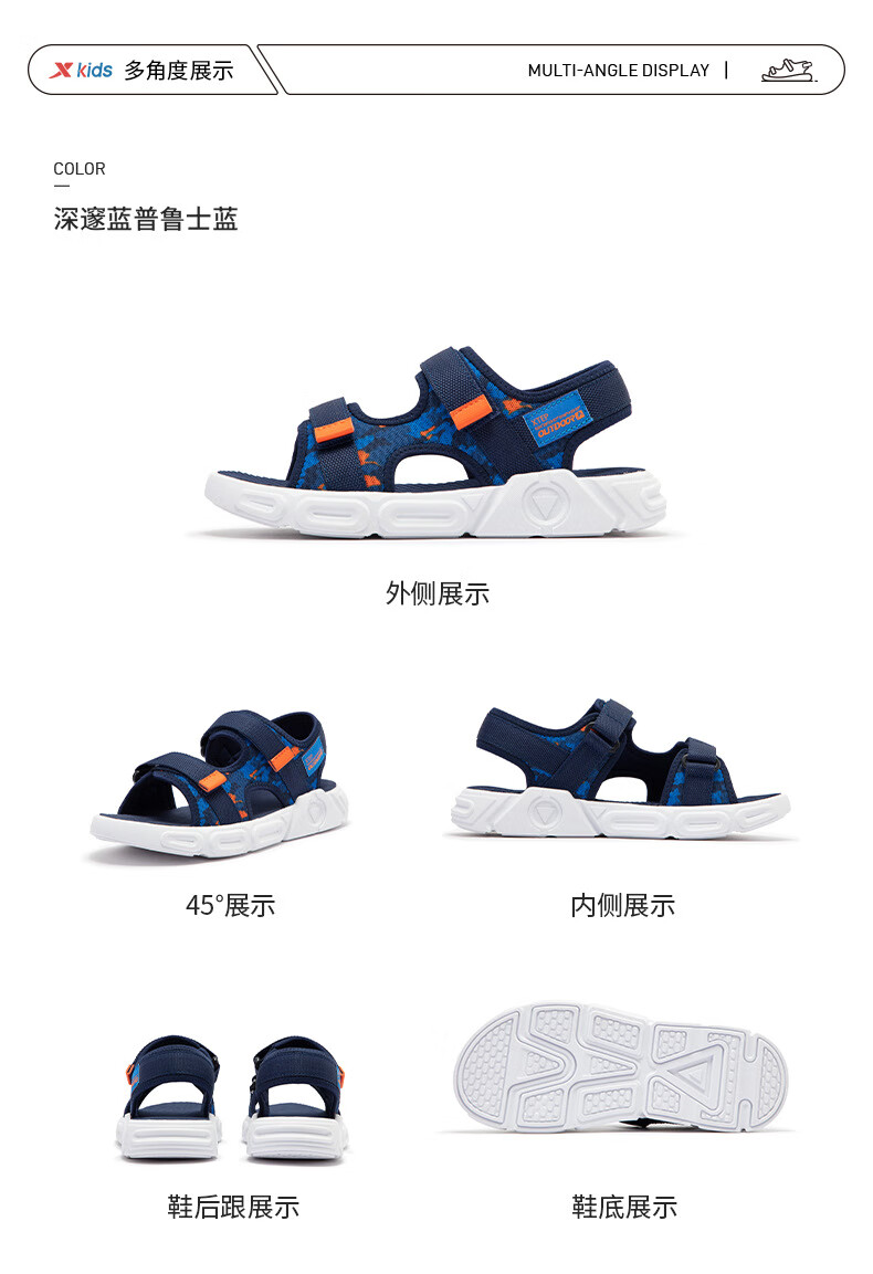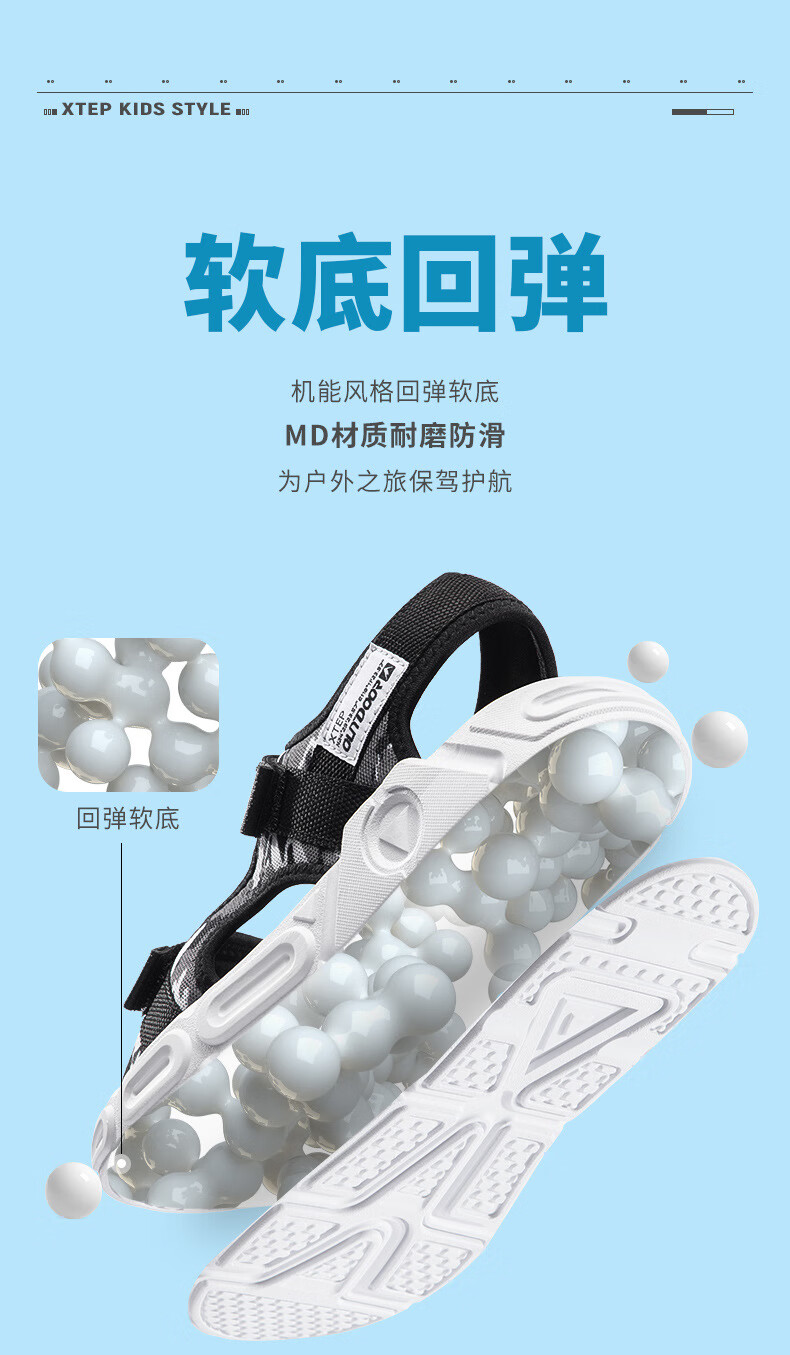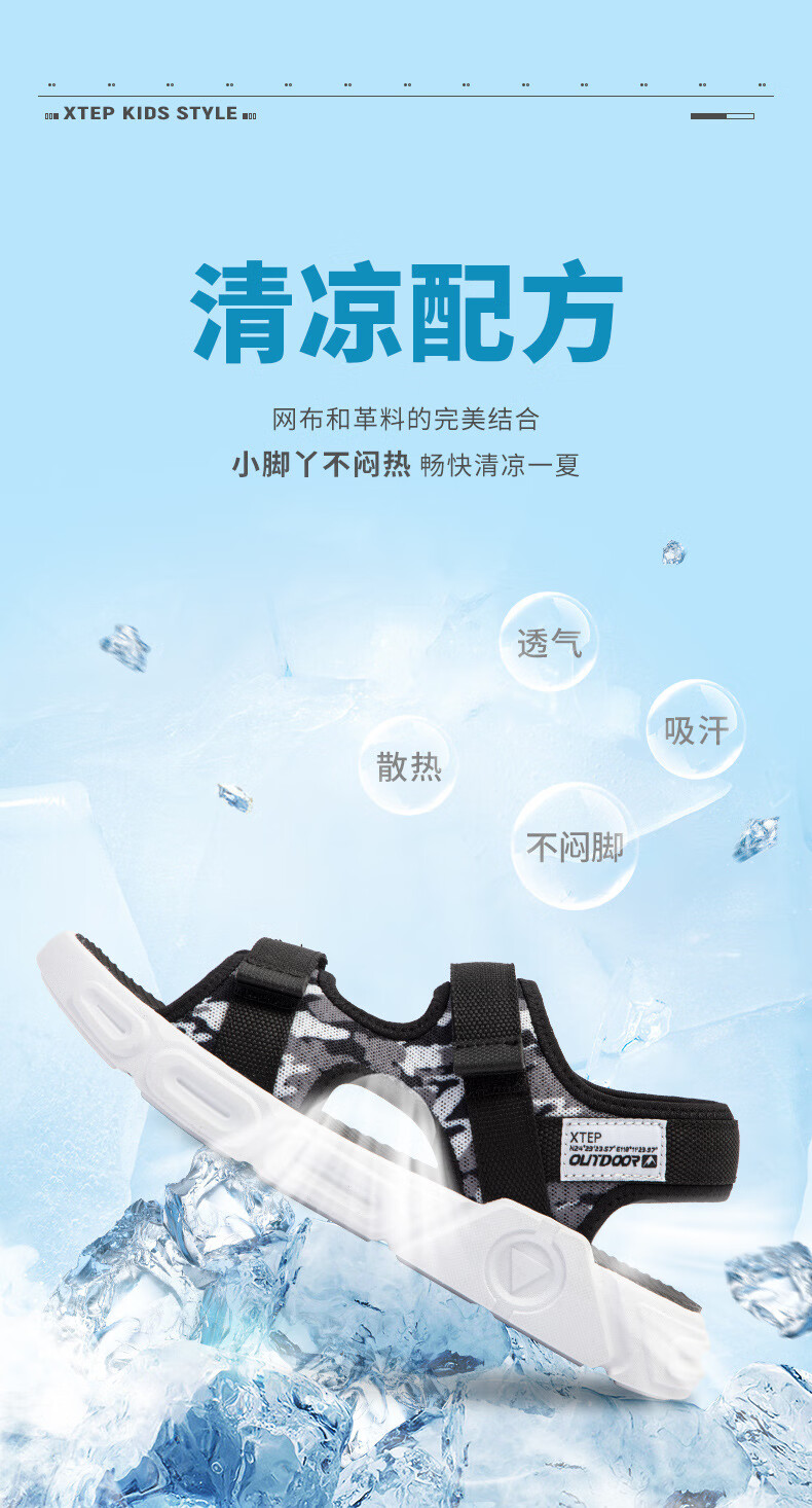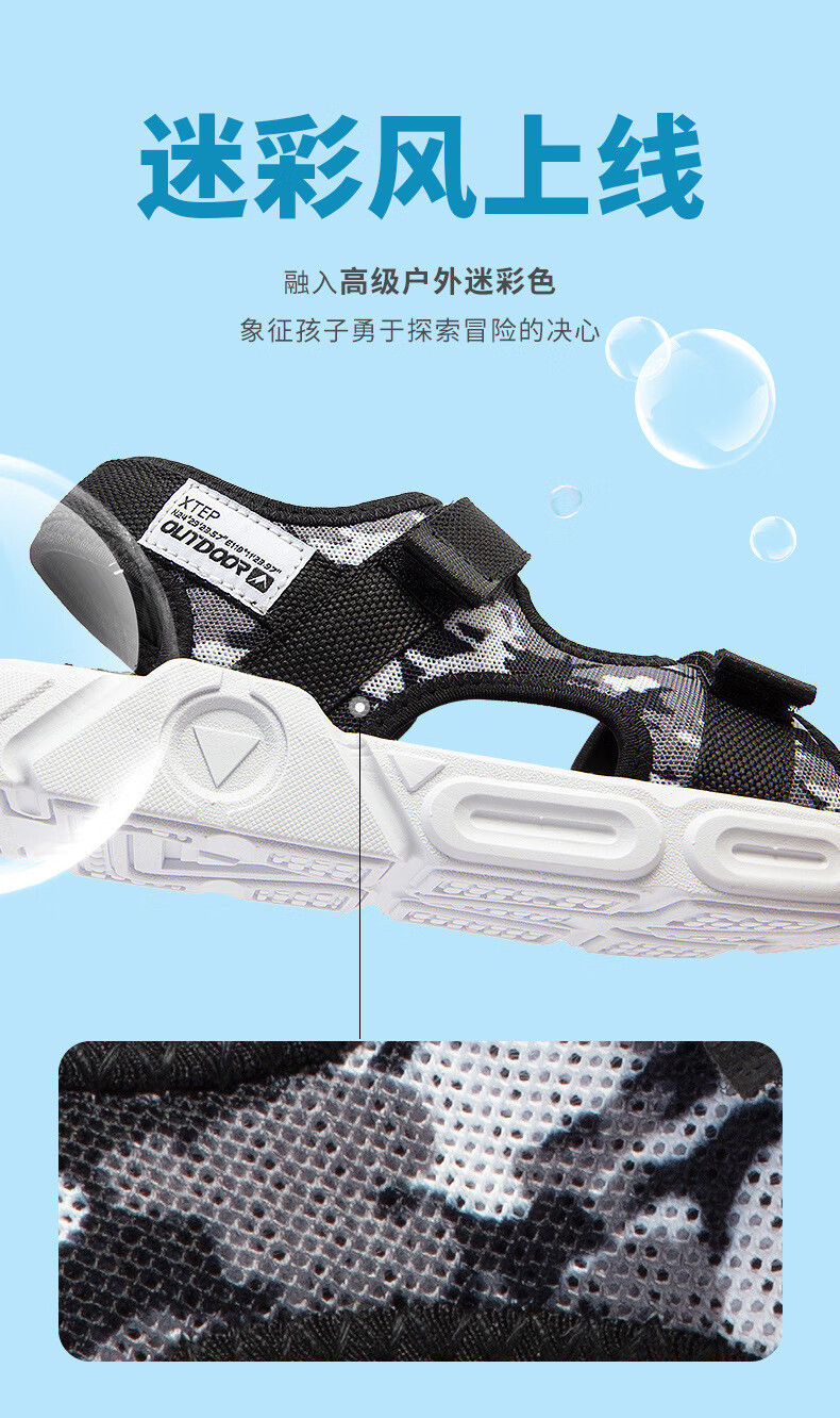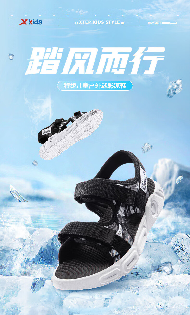 XTEP children's shoes 2025 summer boys' sandals non-slip children's sandals summer boys' shoes girls' beach shoes black 36
