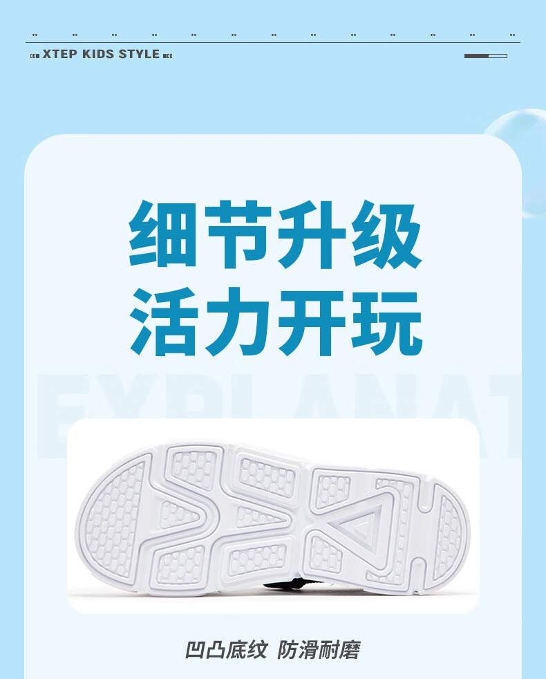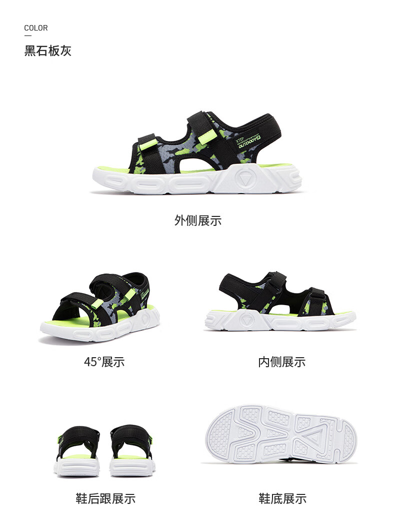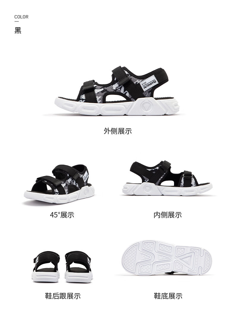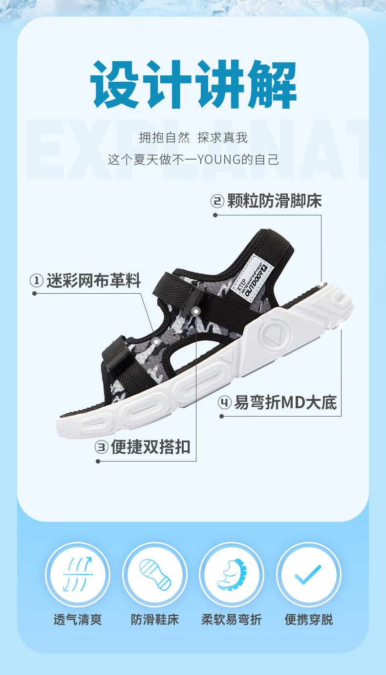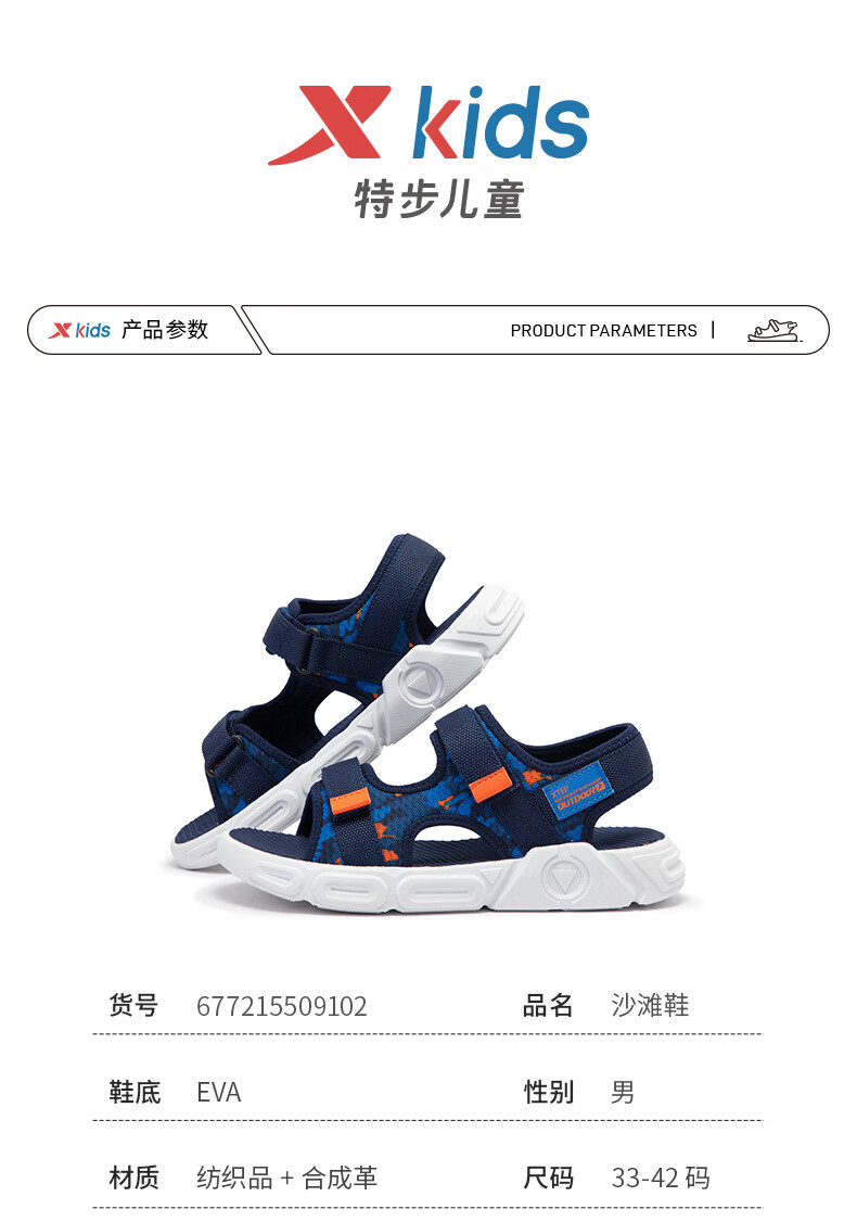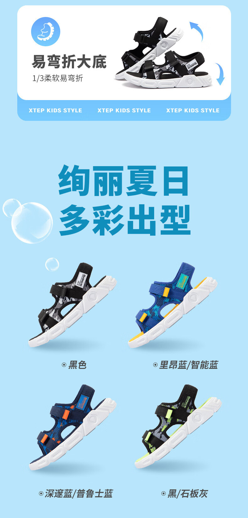 XTEP children's shoes 2025 summer boys' sandals non-slip children's sandals summer boys' shoes girls' beach shoes black 36