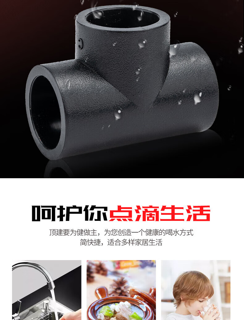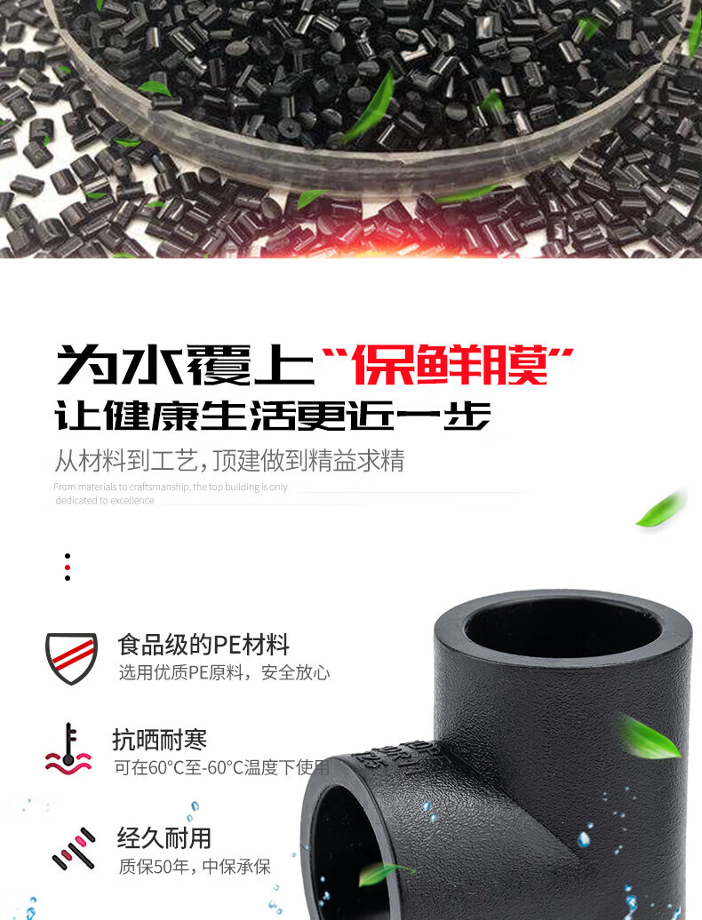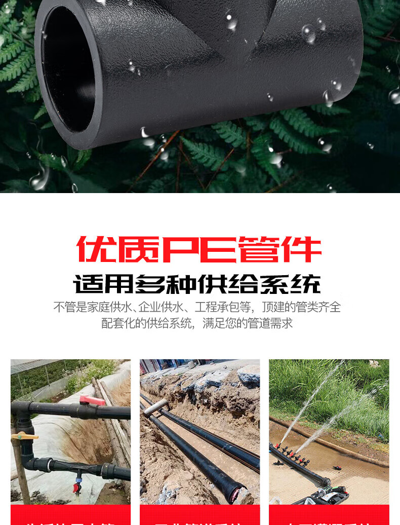 Jinniu Pipe Industry PE Butt Equal Diameter Tee Standard Size Ratio SDR11 Specifications 75mm Black 75mm PE