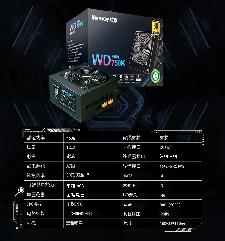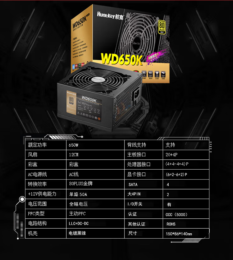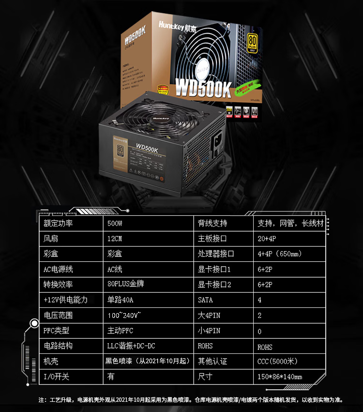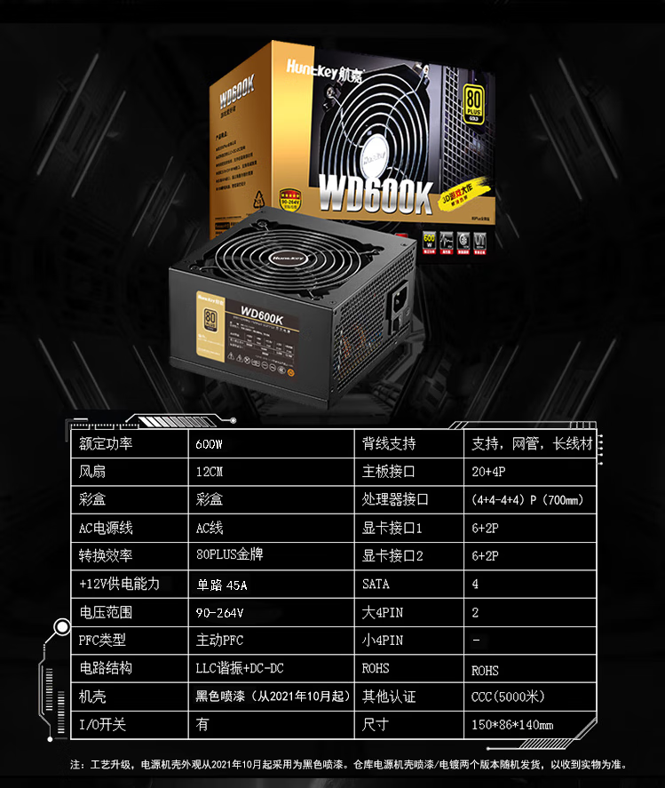 Huntkey power supply desktop GS500/GS600/GS705/GS805 power supply brand new Huntkey GS705 rated 600W, free screwdriver