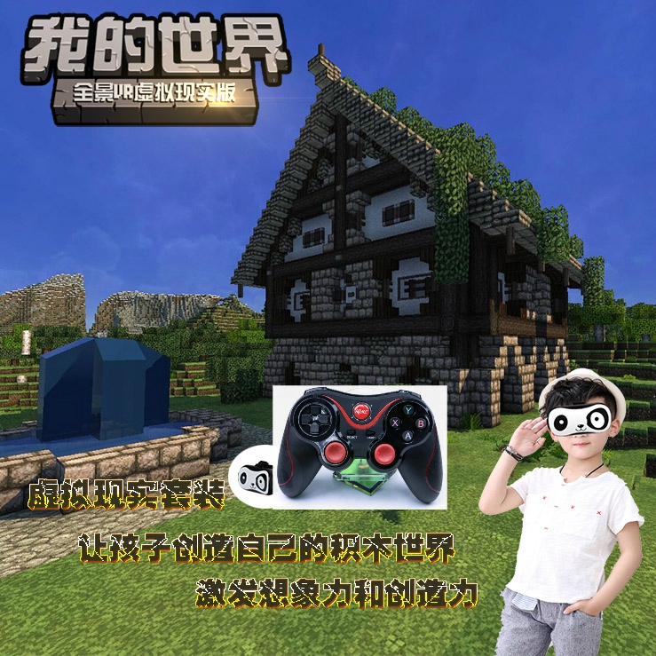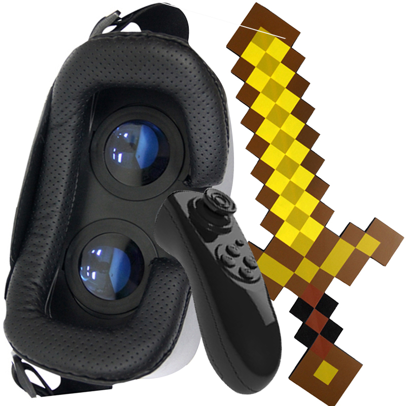 Minecraft block toys animation peripheral 3D mobile game VR glasses with handle children VR + sword