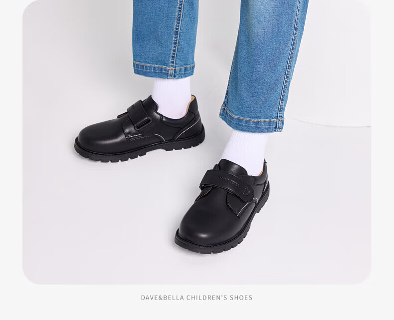DAVE&BELLA boys' leather shoes, toddler shoes, spring new children's shoes, stylish children's performance shoes, boys' shoes, black, in stock 22