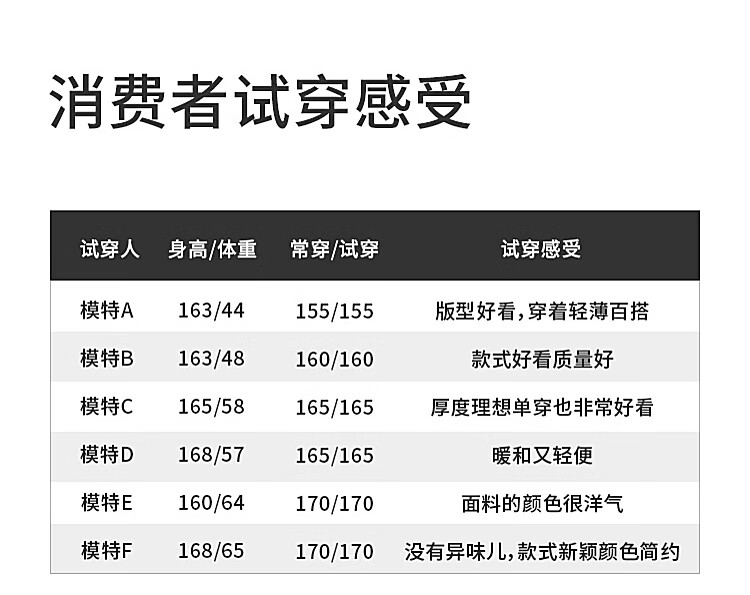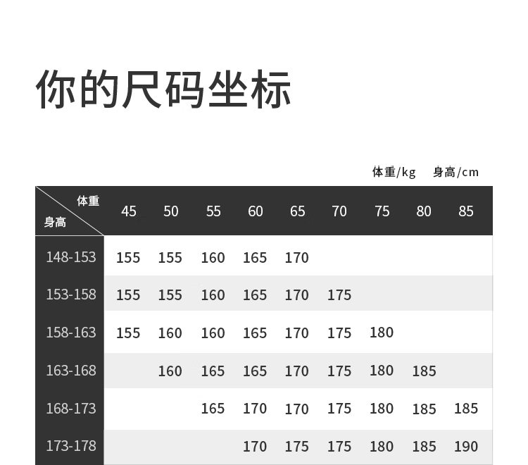 China (cm) 160-165/84-86 165-170 / 88-90 167-172 / 92-96 168-173 / 98-102 170-176 / 106-110