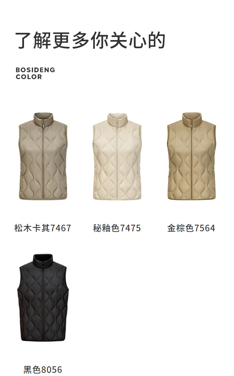 BOSIDENG Outlet Lightweight Down Jacket Uniform Short Style 90 Velvet Three-Proof Fabric Stand Collar Convenient Storage Vest Store Manager Recommendation Secret Glaze Color 7475 2XL 180/100A