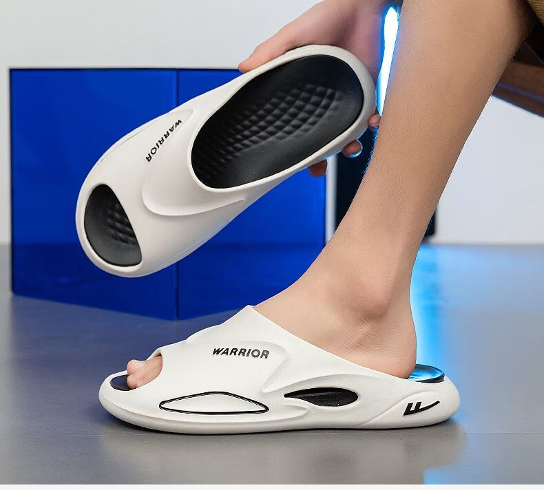 Pull back men's sports slippers, men's thick sole non-slip wear-resistant summer outer wear summer outdoor beach men's shoes white black (wear-resistant and wear-resistant) 42-43