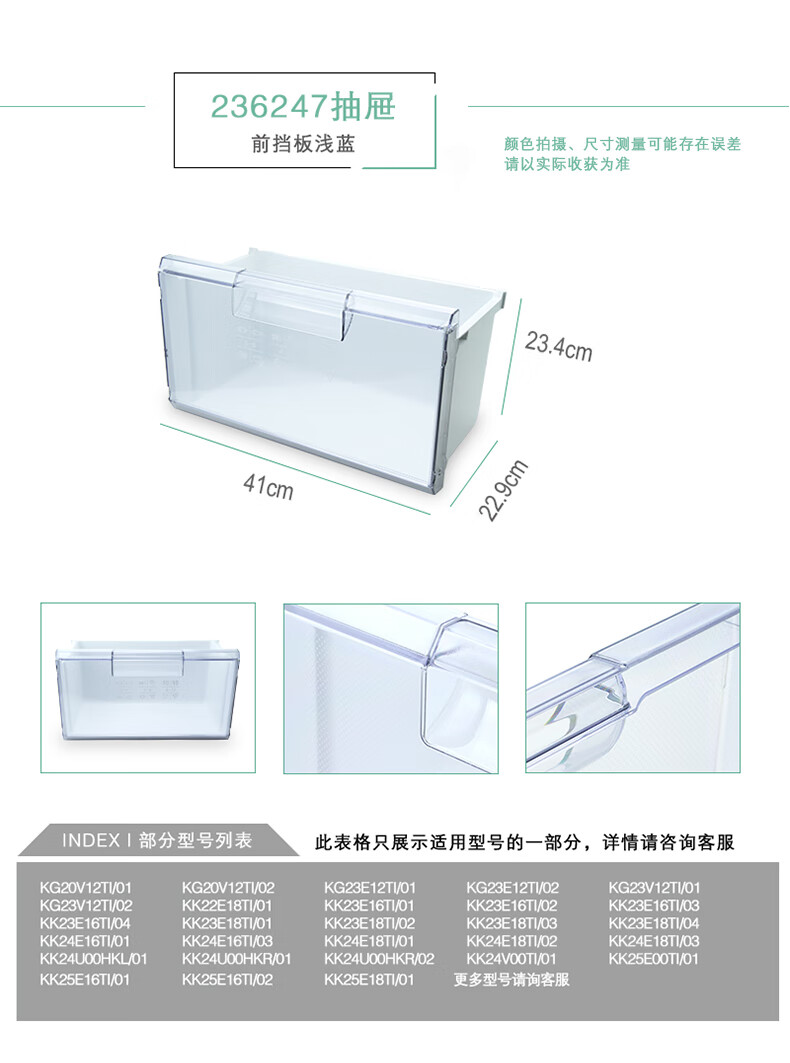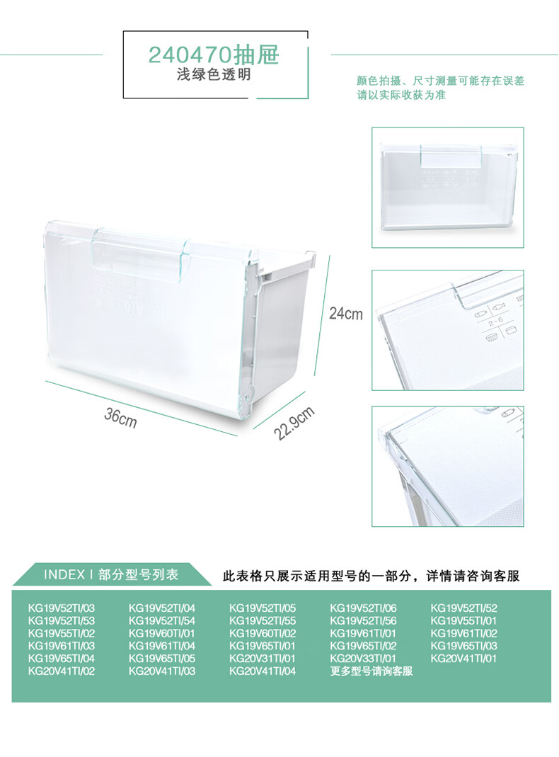 Siemens Bosch refrigerator drawer freezer accessories fresh fruit, vegetable and meat transparent drawer 238371