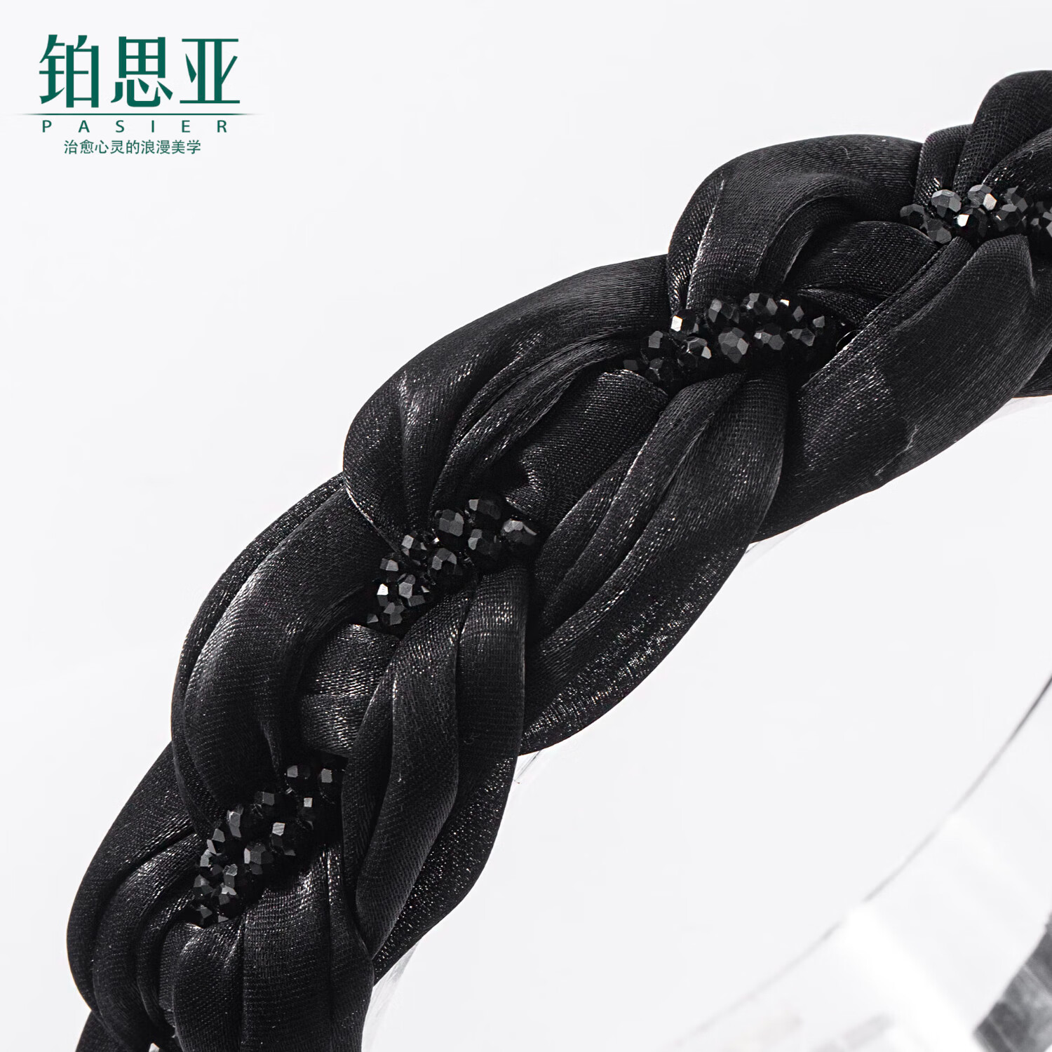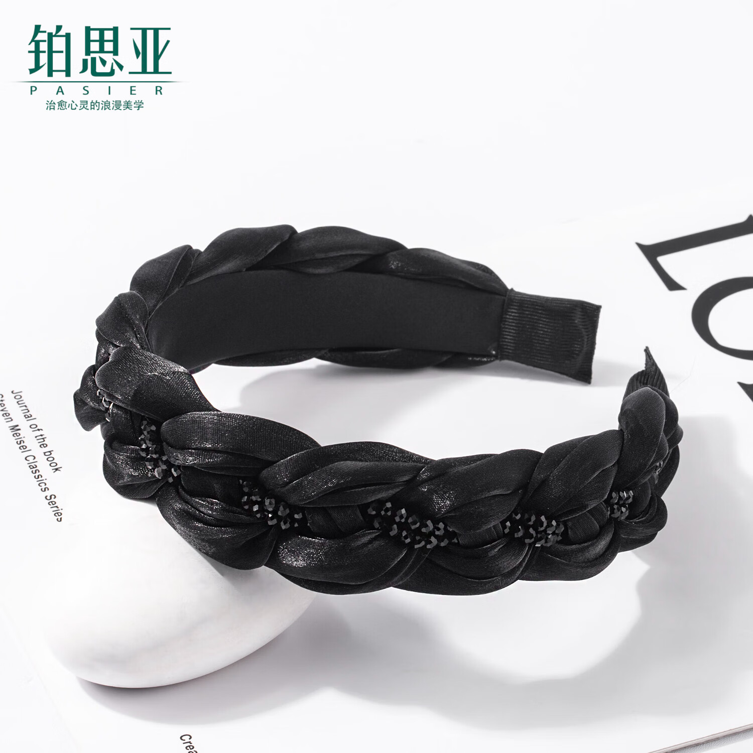 Bosiya small fragrant style braided beaded headband, stylish and high-ceiling headband that does not pick up the face, high-end headwear for going out, black small fragrant style headband