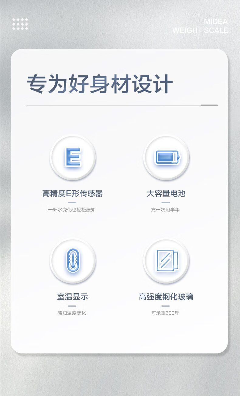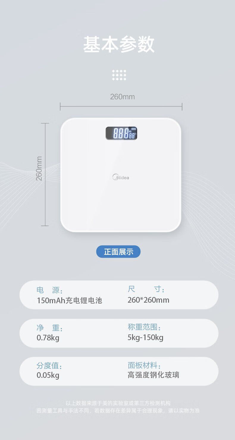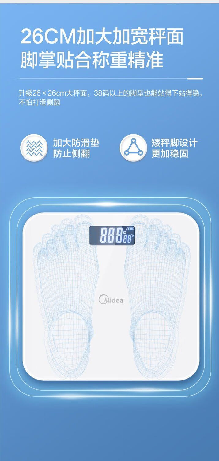 Midea weight scale home health scale electronic scale high-precision scale human body smart scale fitness weight loss exercise battery model D2 high-precision measurement No Specifications