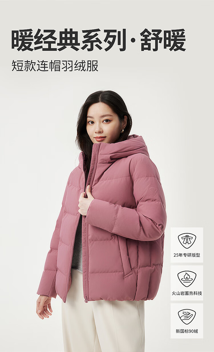 Tambor Down Jacket Women's New Winter Loose Short Thick Warm Hooded Middle-aged Warm Jacket TBF510356J Black XL (175)