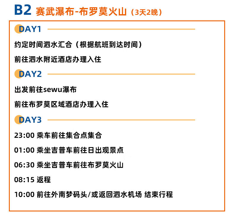 Indonesia Bali Tourism Surabaya Volcano Group Tour/Mount Bromo/Sewu Waterfall Hiking/Watching the Sunrise/Including 2 Nights Hotel/3 Days 2 Nights Surabaya August