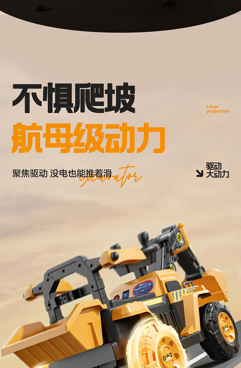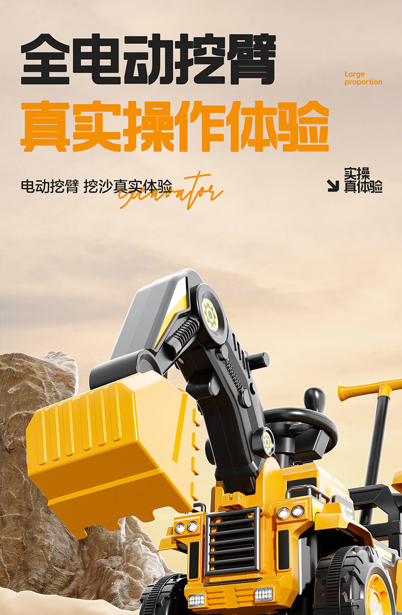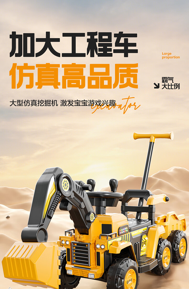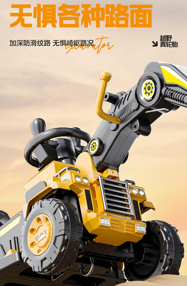LIVING STONES children's electric car excavator can sit on, adults can dig soil, car can be driven by 2-9 years old, remote control toy car for boys, fully electric, electric digging arm + music light + gift bag, large excavator, electric car for children aged 1-3 years old