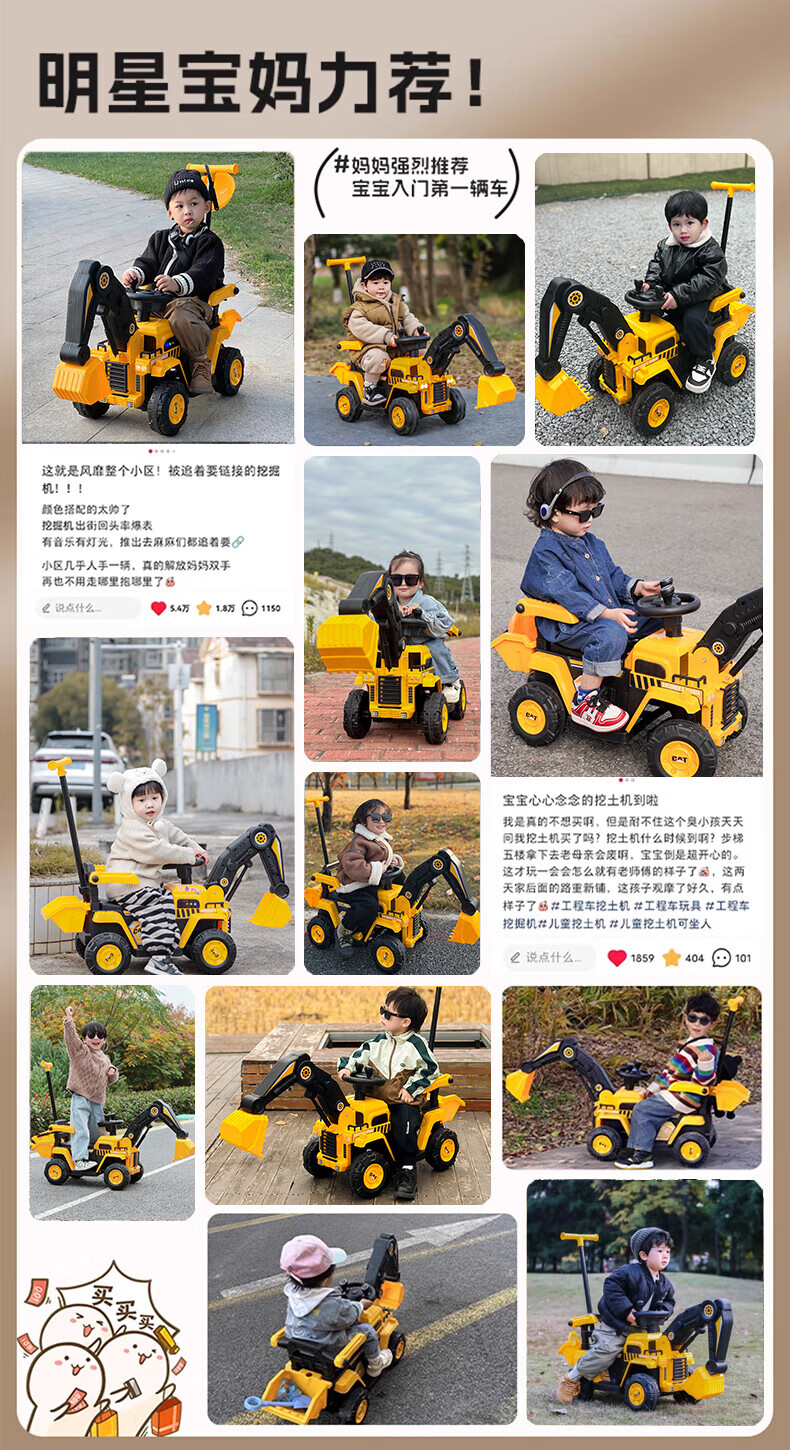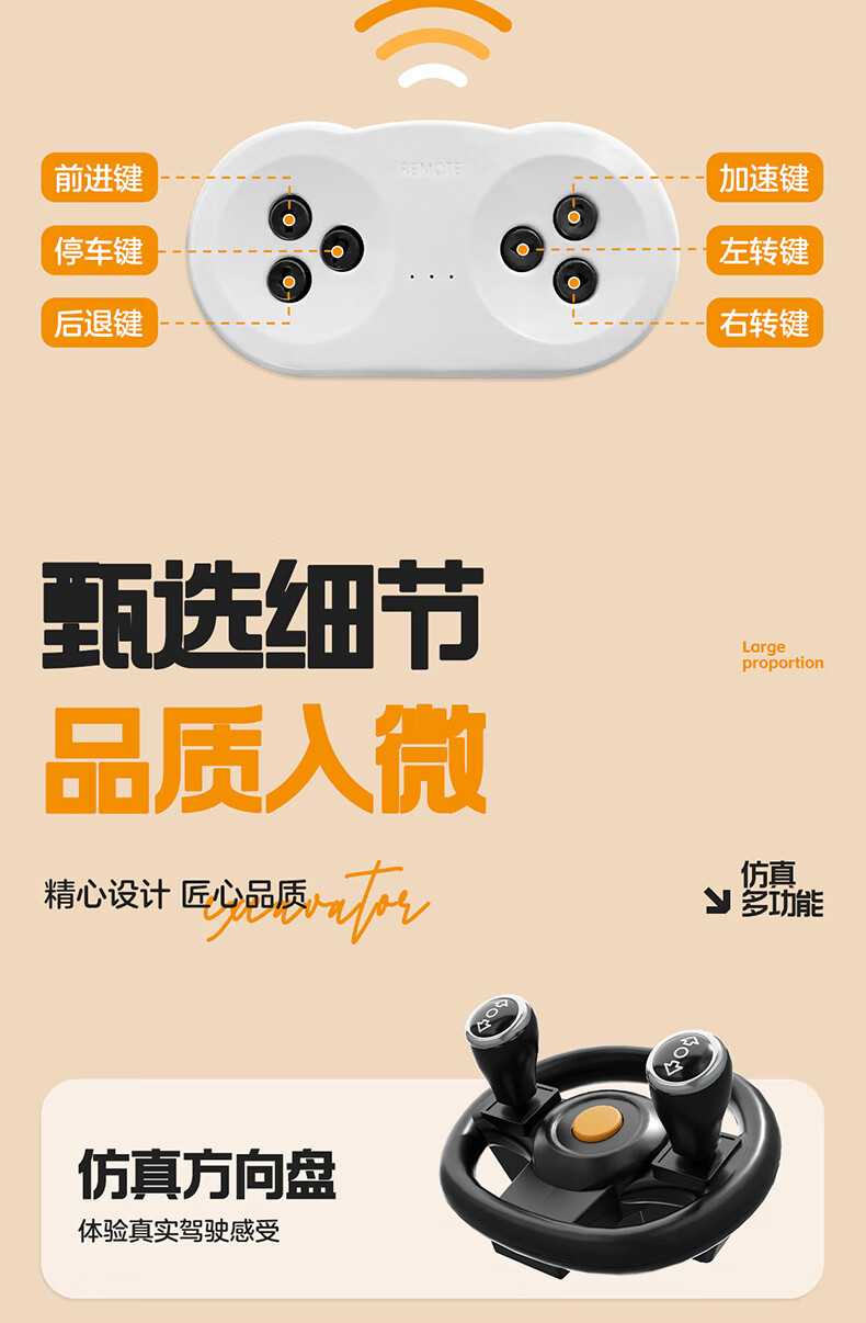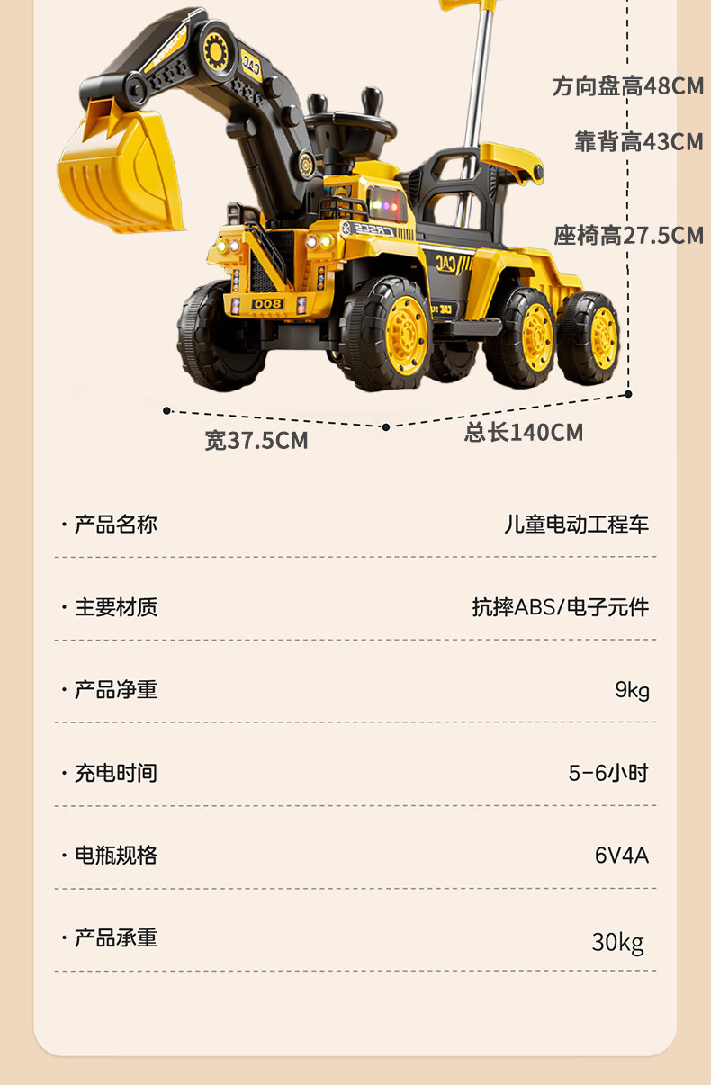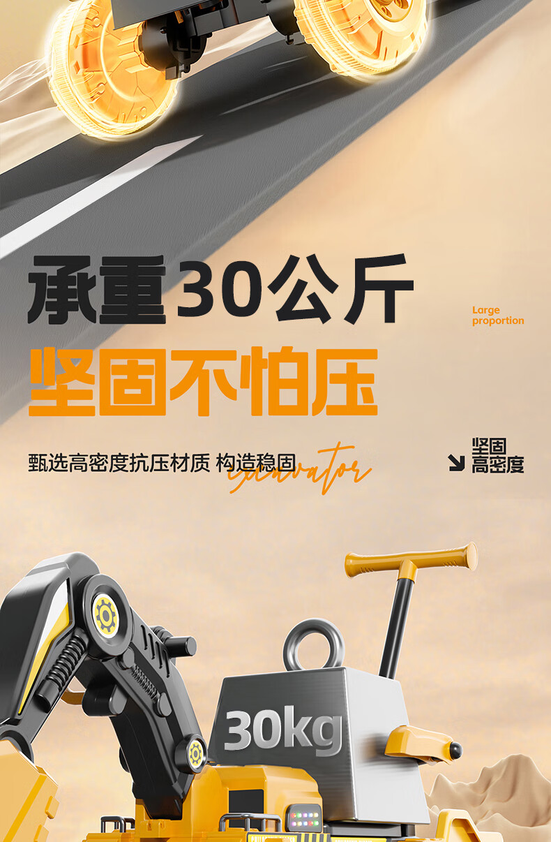 LIVING STONES children's electric car excavator can sit on, adults can dig soil, car can be driven by 2-9 years old, remote control toy car for boys, fully electric, electric digging arm + music light + gift bag, large excavator, electric car for children aged 1-3 years old