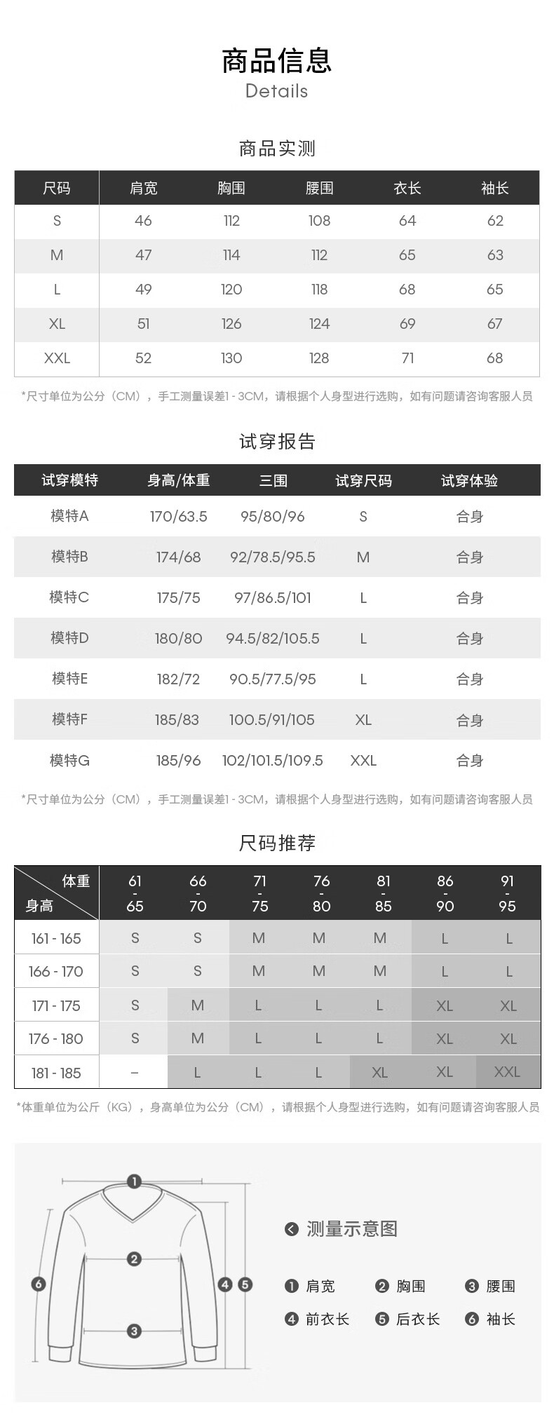 China (cm) 165 / 88-90 170 / 96-98 175 / 108-110 180 / 118-122 185 / 126-130
