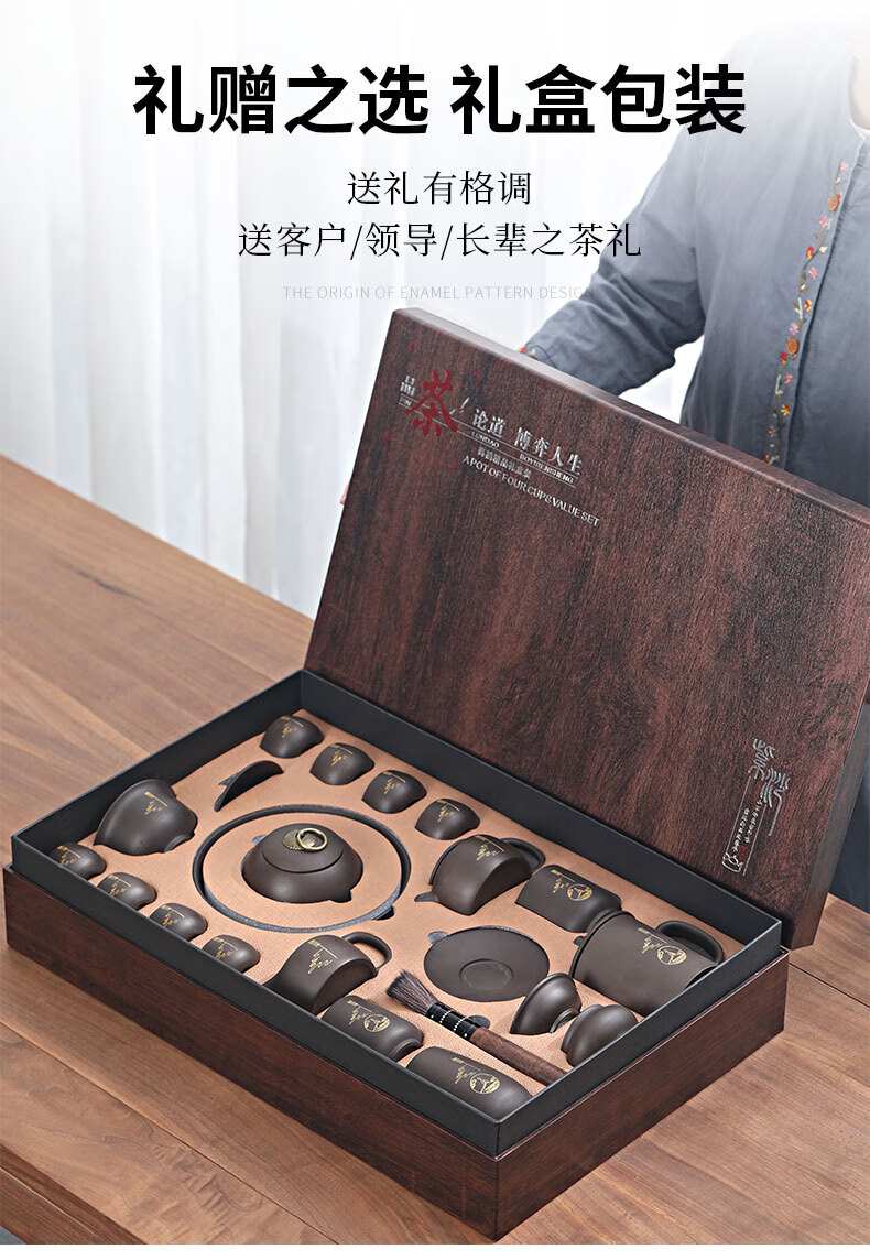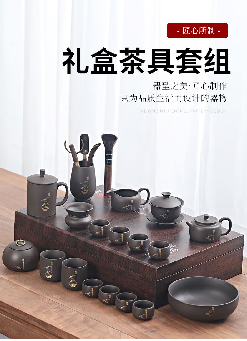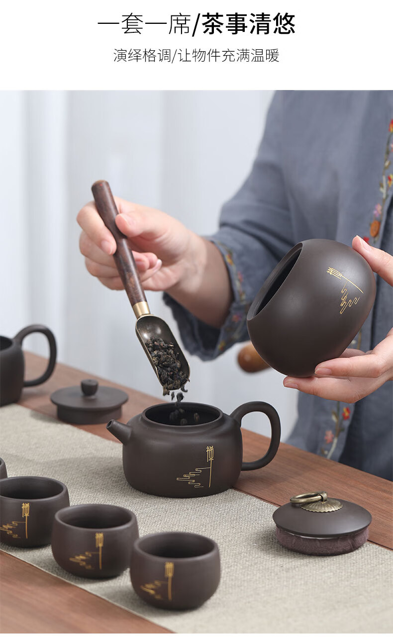 Langting Yafang purple sand tea set complete set of household kung fu teapot teacup tea ceremony tea boat tea set high-end gift box Zen Tao purple sand tea set gift box set