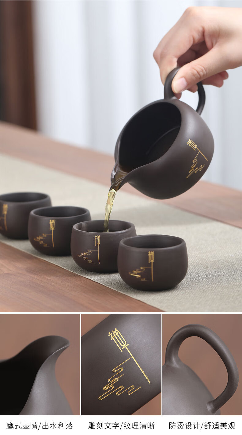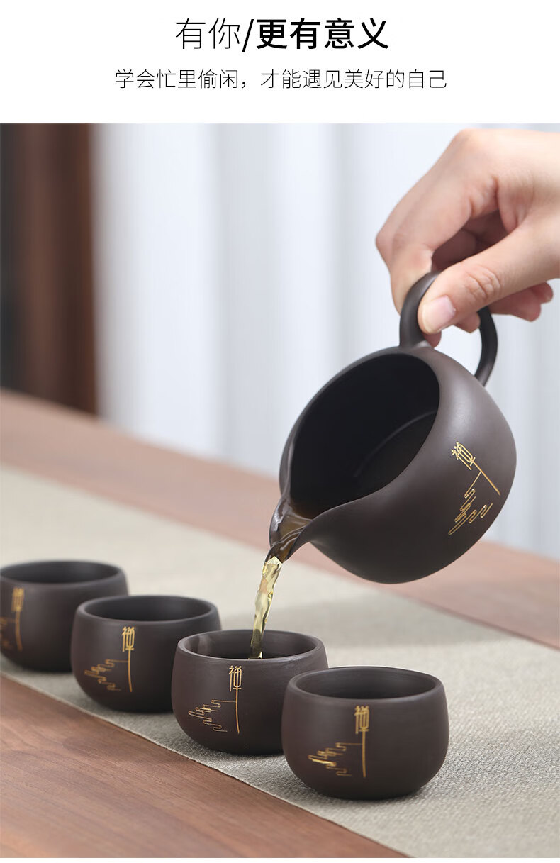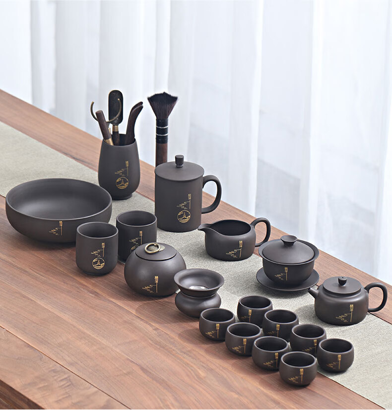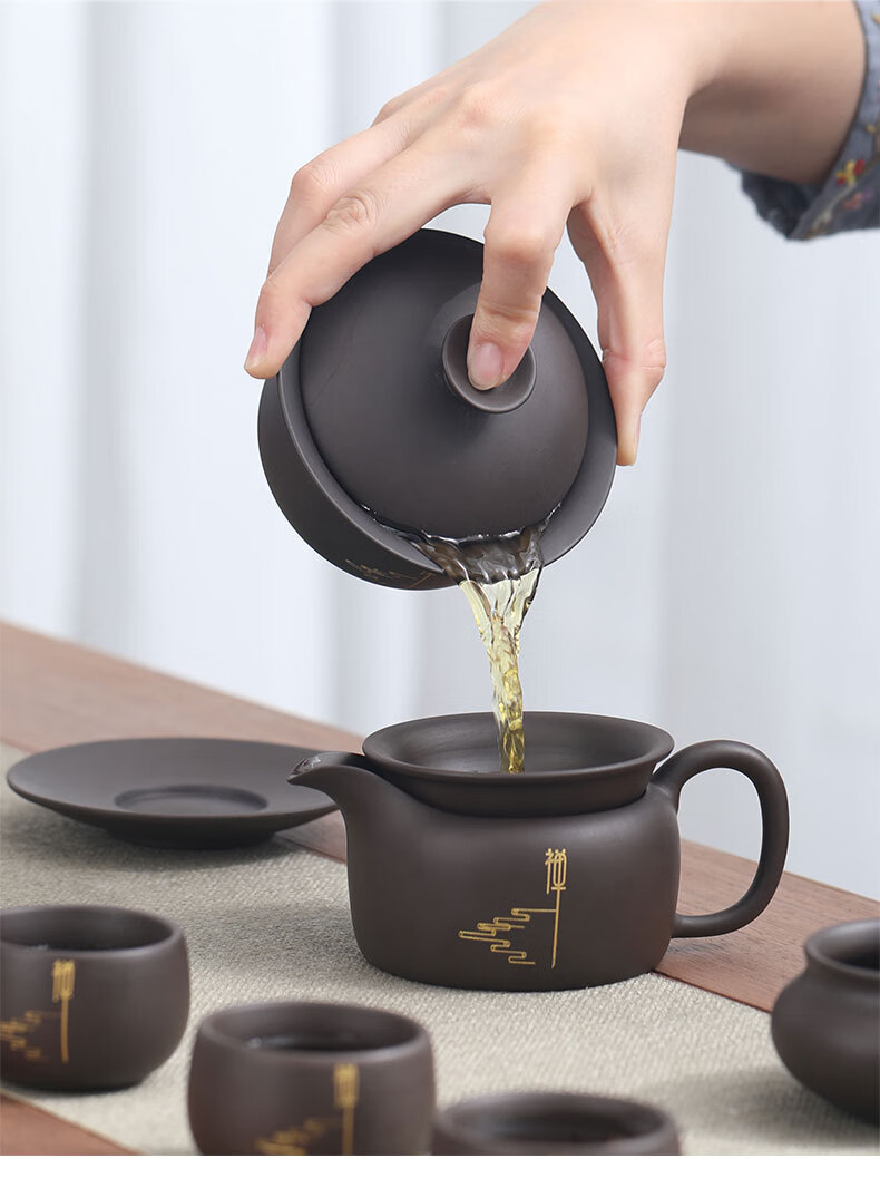 Langting Yafang purple sand tea set complete set of household kung fu teapot teacup tea ceremony tea boat tea set high-end gift box Zen Tao purple sand tea set gift box set