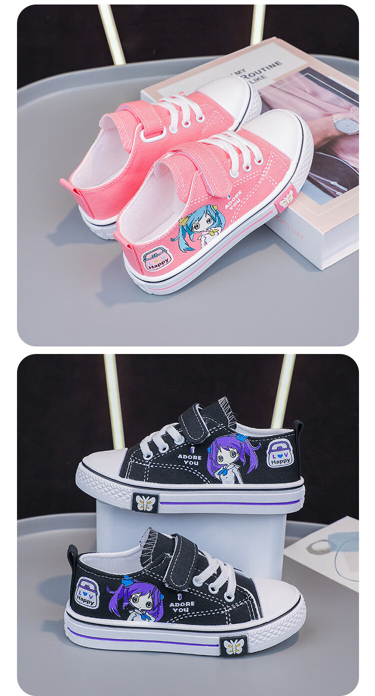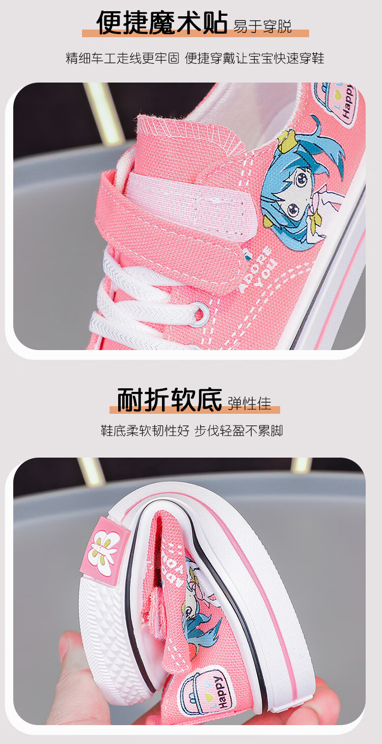 G.duck girls canvas shoes 2024 new spring versatile primary school student sneakers breathable children's cloth shoes soft sole girls shoes pink 28