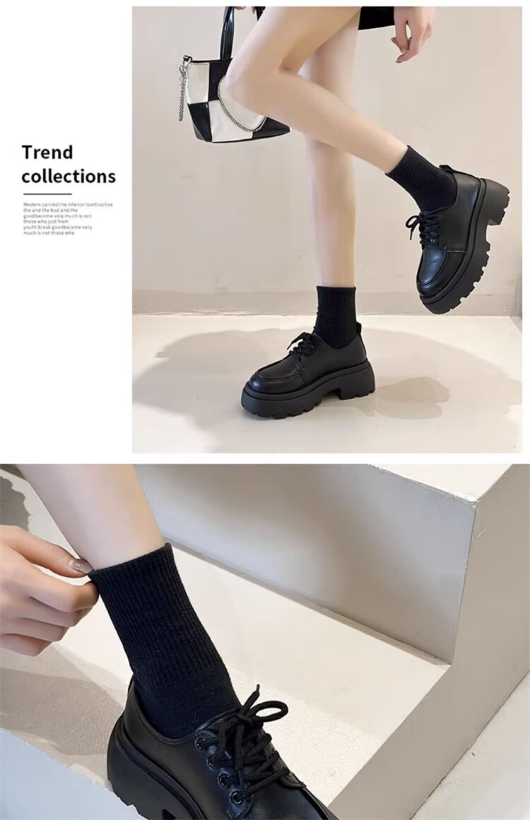 CAMILA KSENIA small leather shoes British style ladies 2025 new autumn thick sole fashion versatile single shoes platform Loaf shoes brand matte black 37