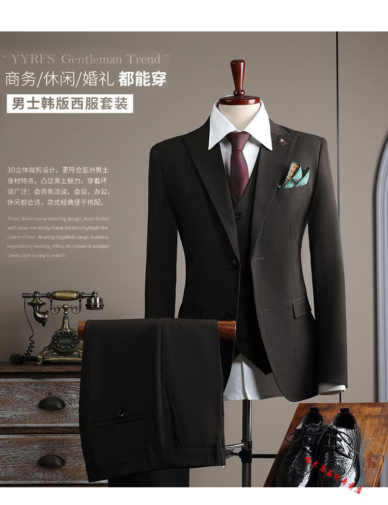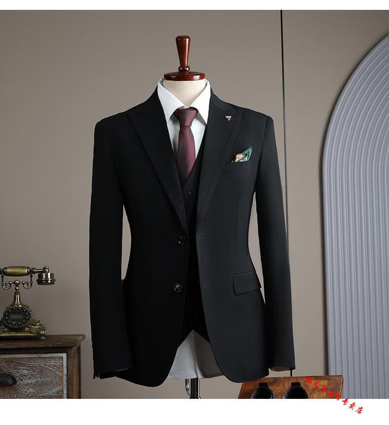 Woodpecker (TUCANO) fashionable Korean suit men's three-piece wedding groomsmen suit professional formal work suit men's suit 9992 black (suit + trousers) 52/XL (125-135 Jin Jin equals 0.5 kg)