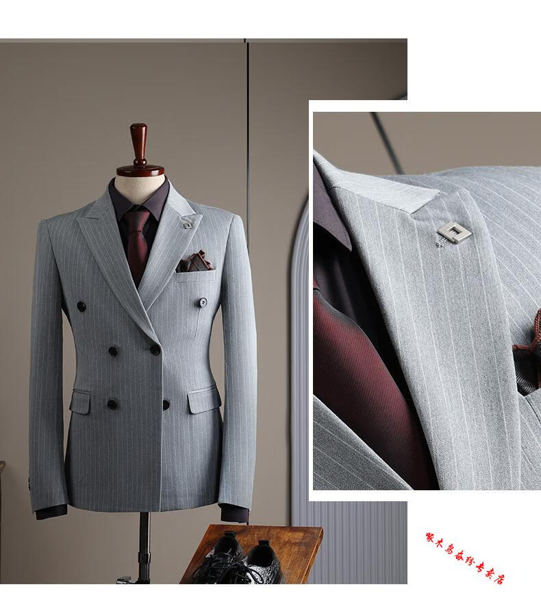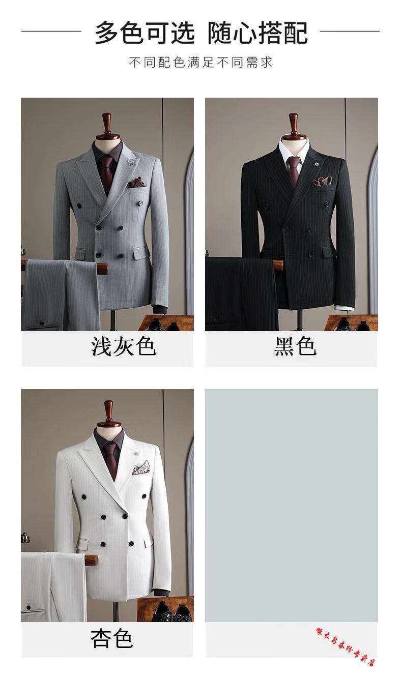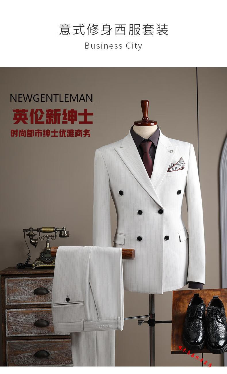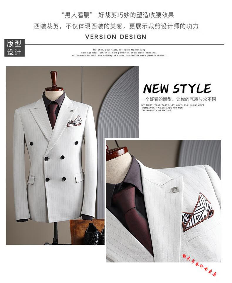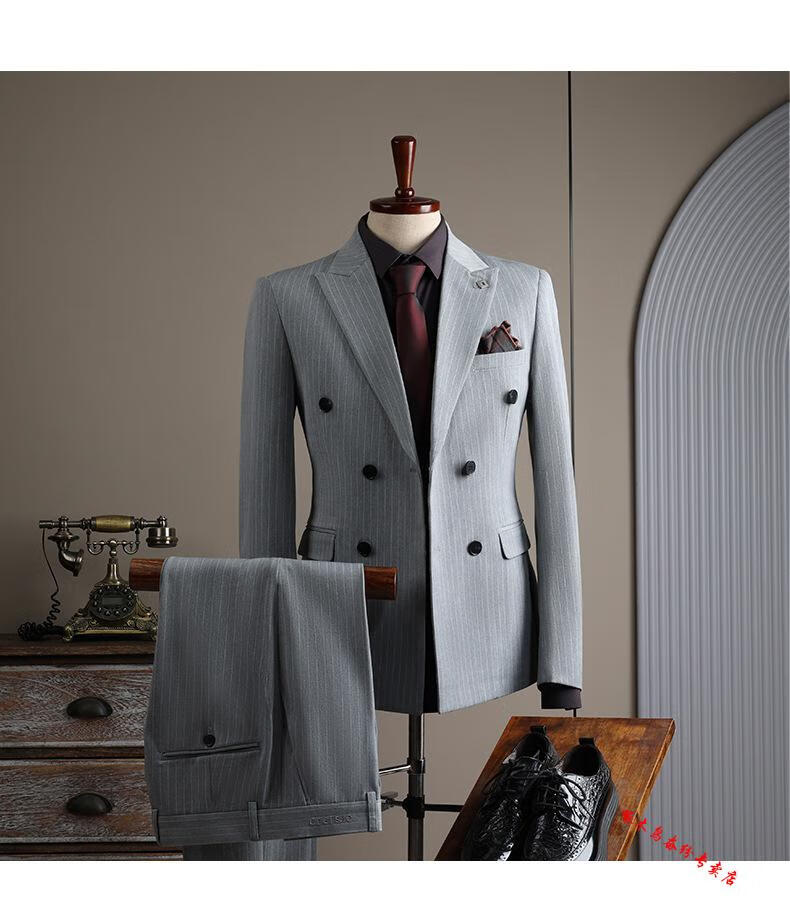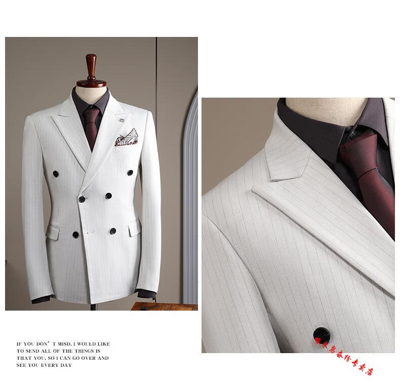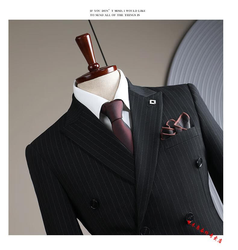 Woodpecker (TUCANO) double-breasted striped suit men's suit casual groom wedding dress business slim suit suit men 6831 black stripes (suit + trousers) 52/XL (125-135Jin Jin equals 0.5 kg)