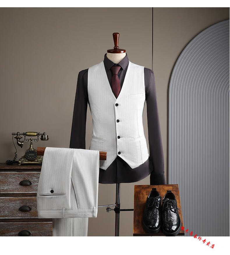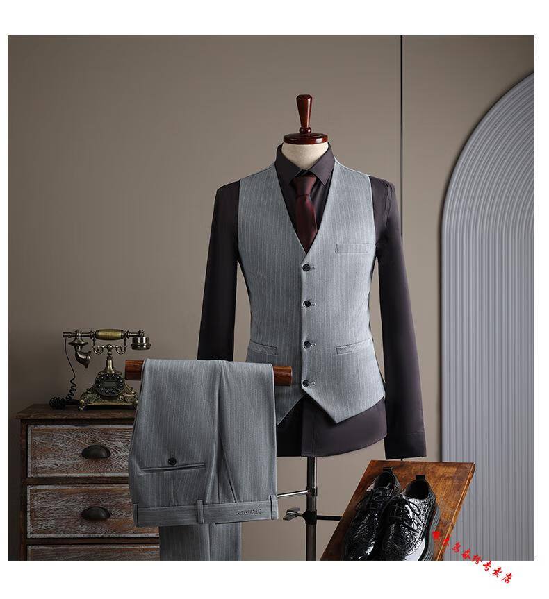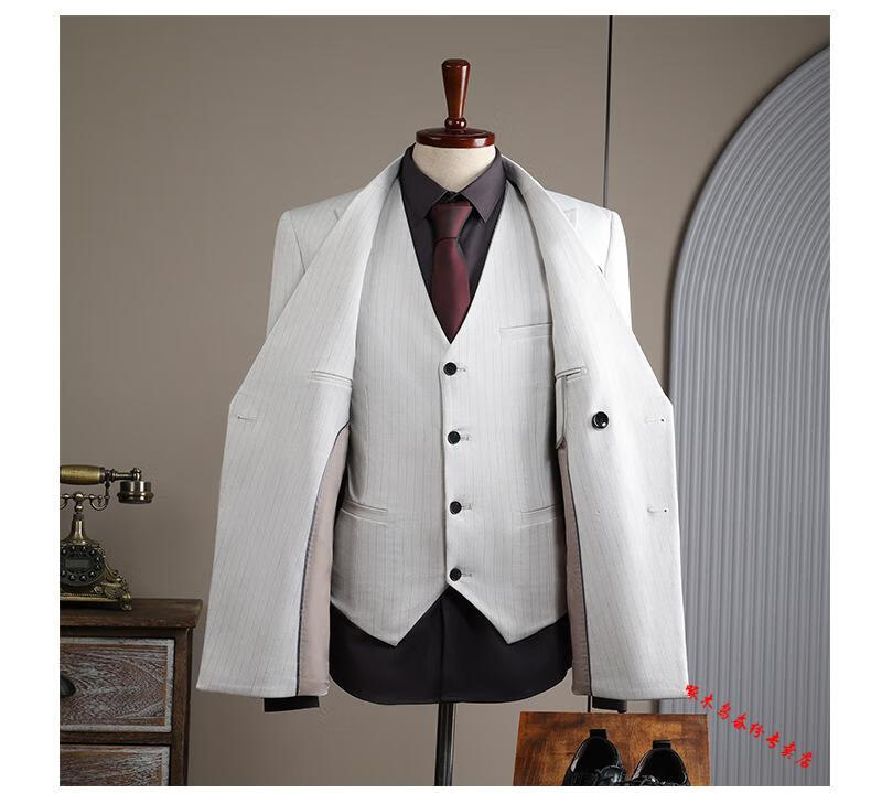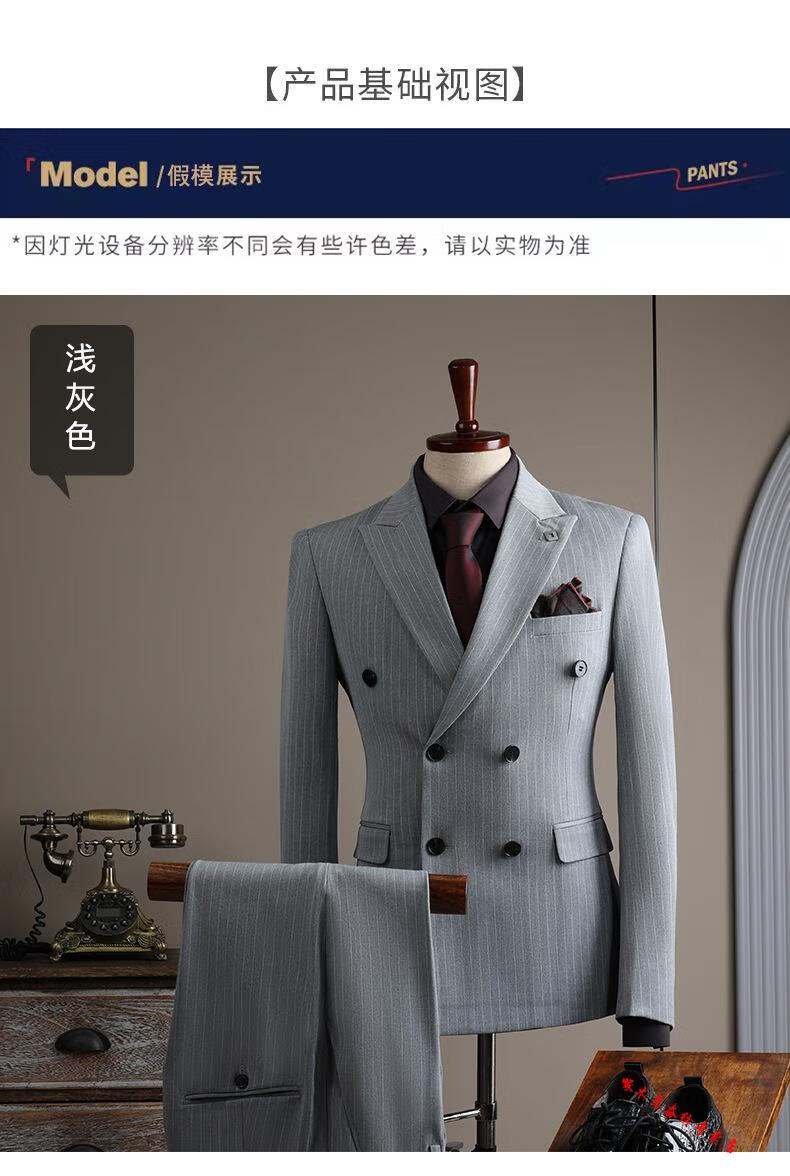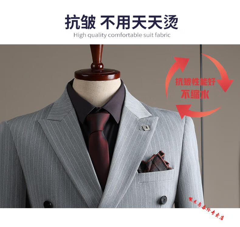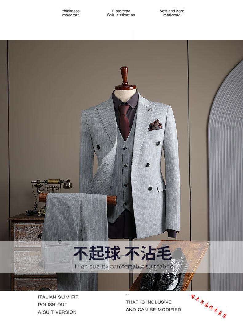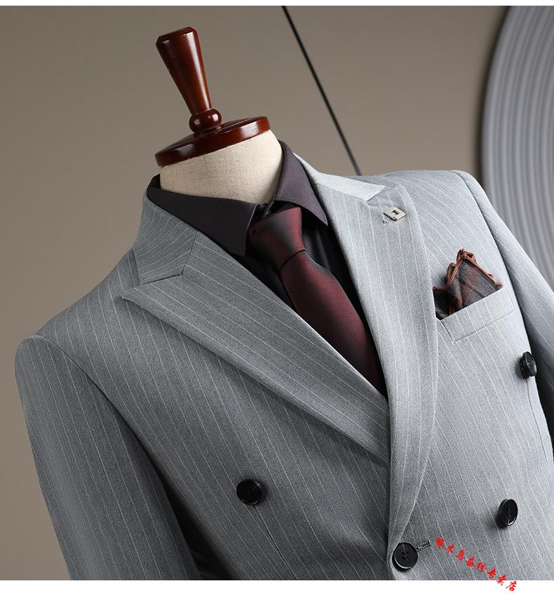 Woodpecker (TUCANO) double-breasted striped suit men's suit casual groom wedding dress business slim suit suit men 6831 black stripes (suit + trousers) 52/XL (125-135Jin Jin equals 0.5 kg)