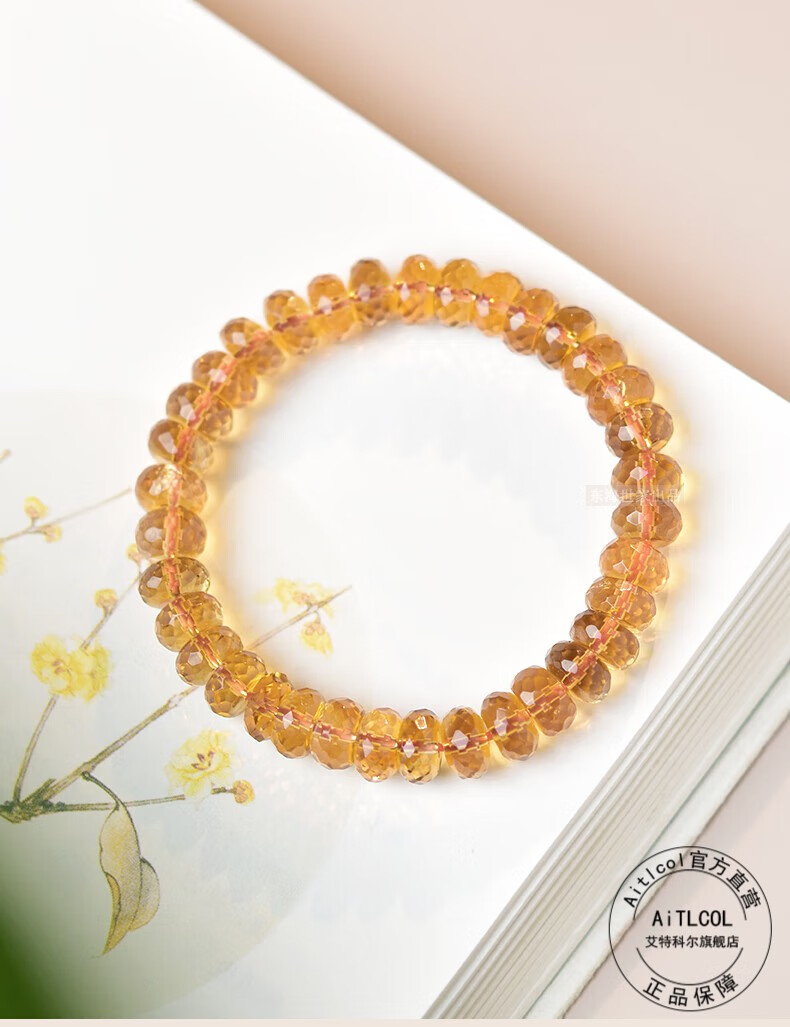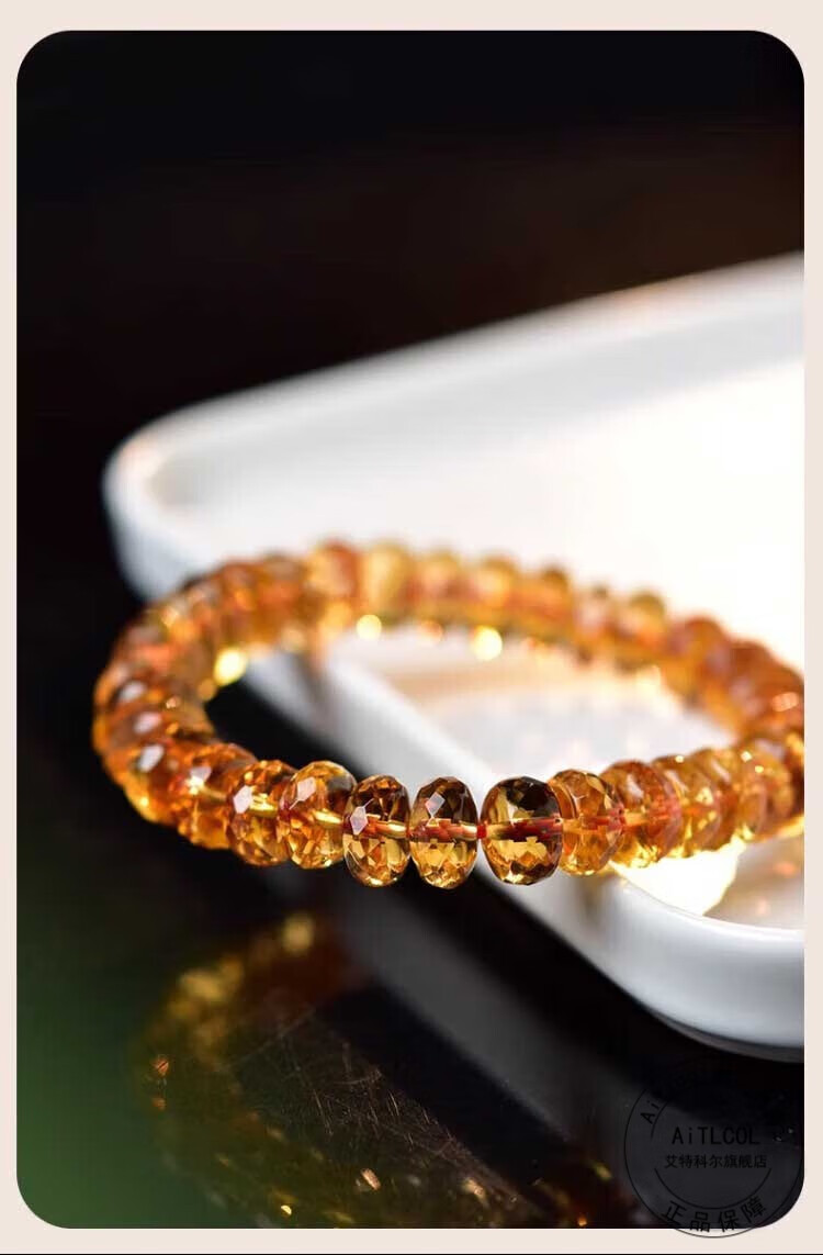 Aitkel Pure Body Brazilian Citrine Abacus Bead Bracelet for Men and Women Faceted to Bring Wealth and Prosperity as Gift for Girlfriend Boutique Grade Faceted Citrine-10mm