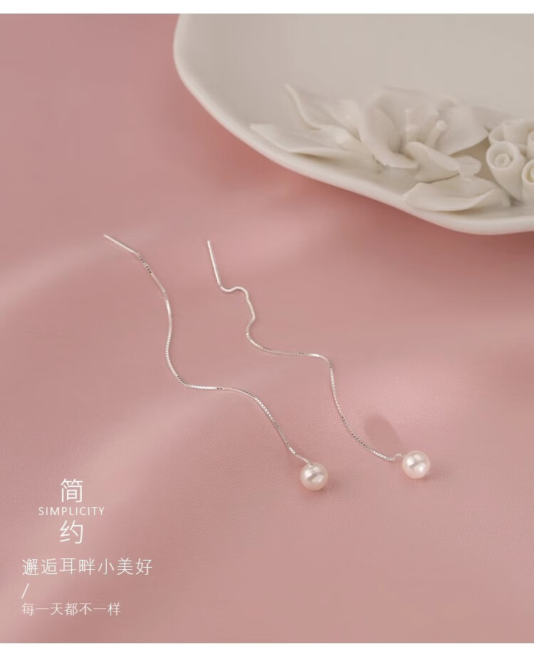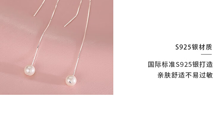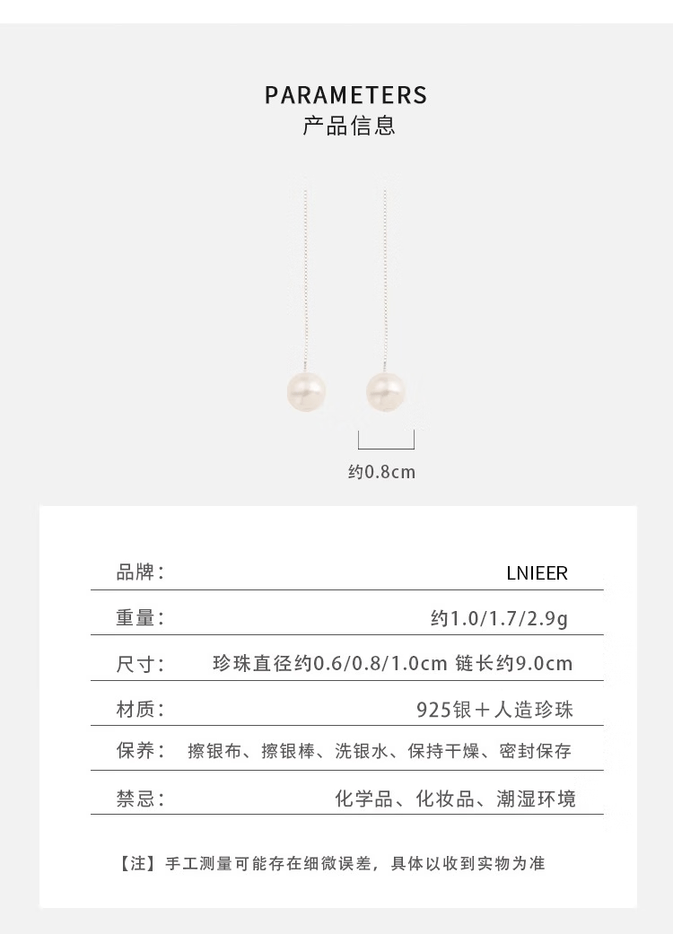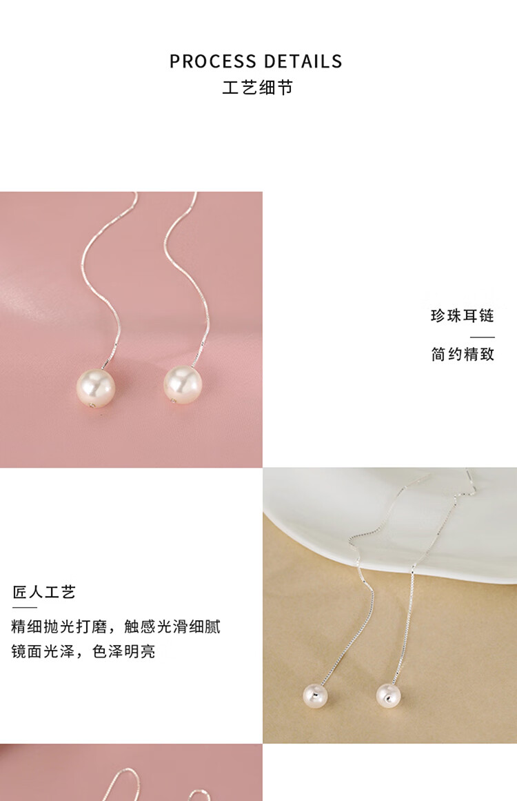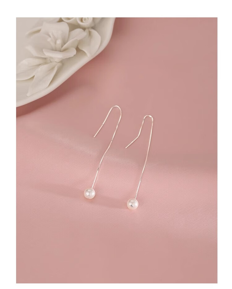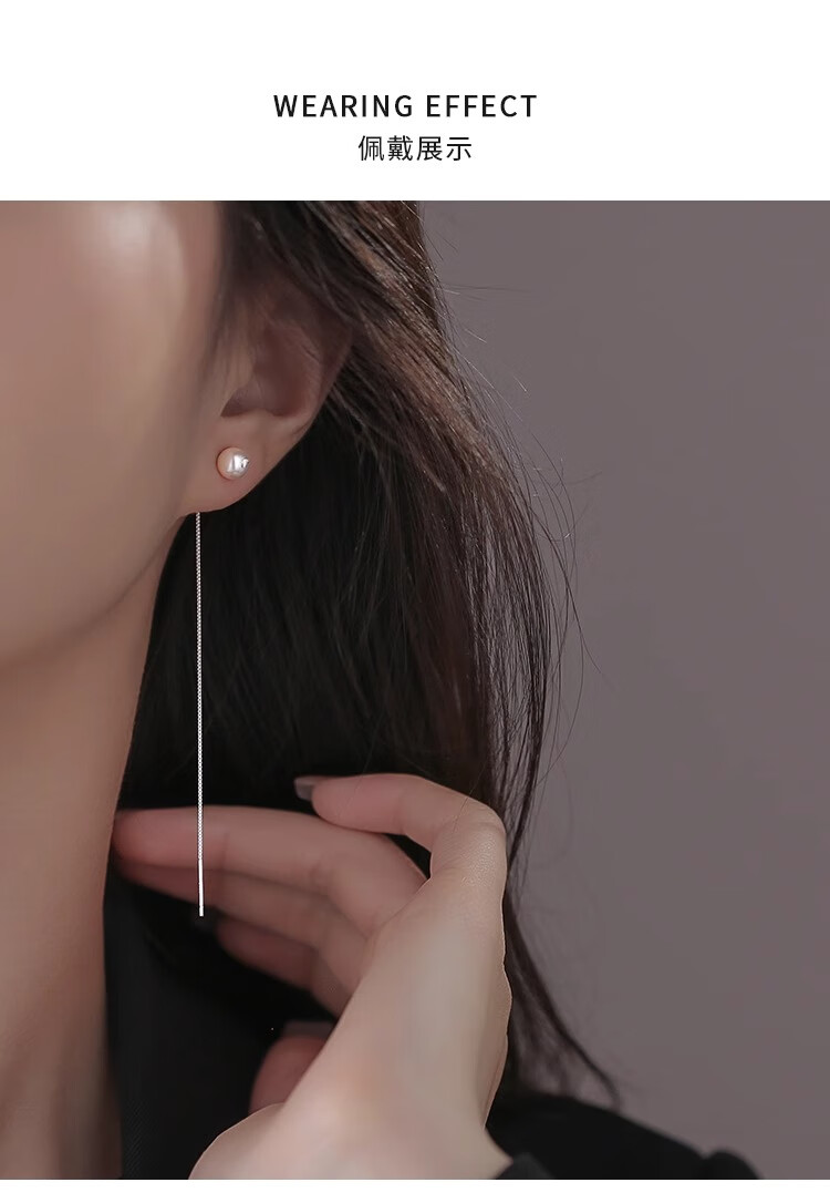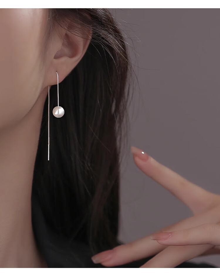 Lnieer925 silver mother-of-pearl ear wire 2025 new ear chain women's high-end long tassel earrings trendy earrings earrings pearl ear wire-6mm 925 silver