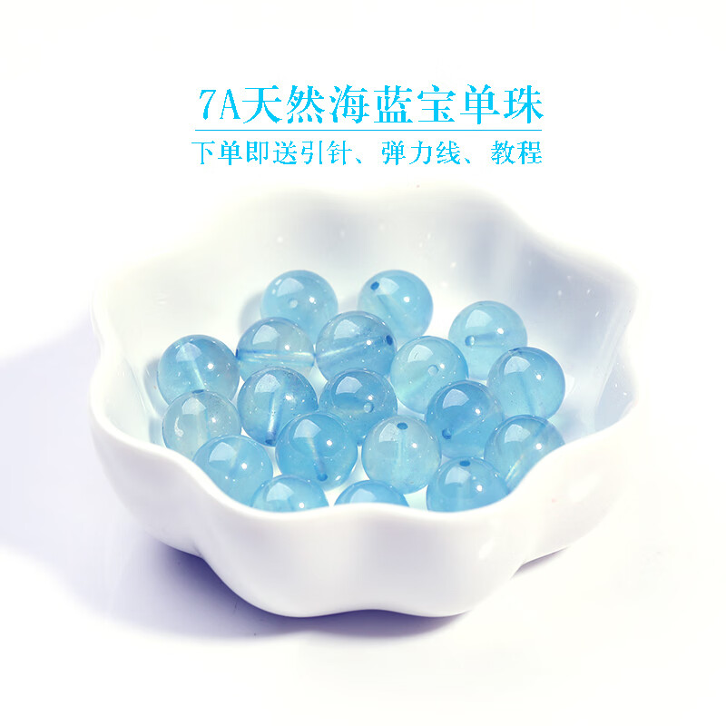 Ruiji 7A natural ice aquamarine loose beads handmade diy ladies bracelet necklace crystal multi-treasure devil blue single piece 7A aquamarine devil blue about 12mm/1 piece