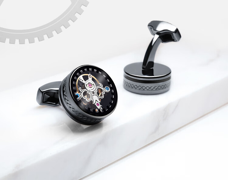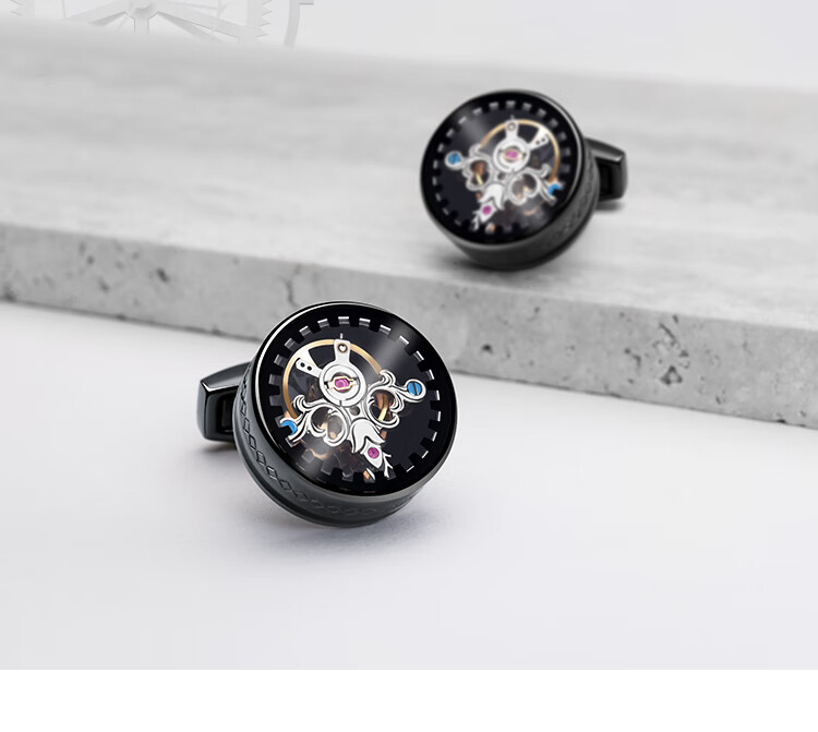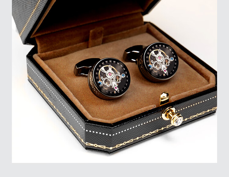 Chuangjing Yixuan Perpetual Tourbillon Cufflinks Men's Gentleman's Birthday Gift Light Luxury Customized French Shirt Suit Cuff Buttons Gift Boxed Black Cuff Buttons
