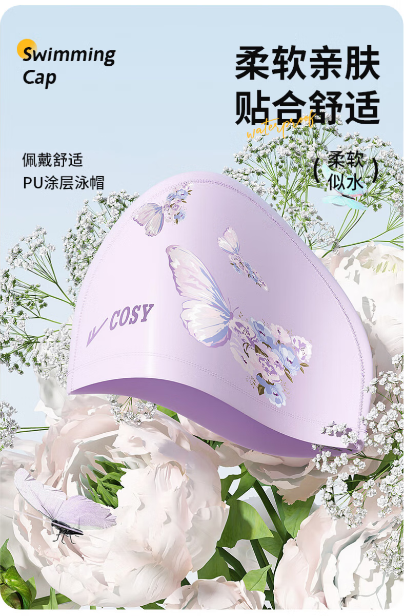 Pull-back swimming cap for women, comfortable and non-stretching, outer rubber lining, PU hat, ear protection, professional long hair waterproof enlarged swimming cap, pure white, outer rubber lining, elastic and flexible