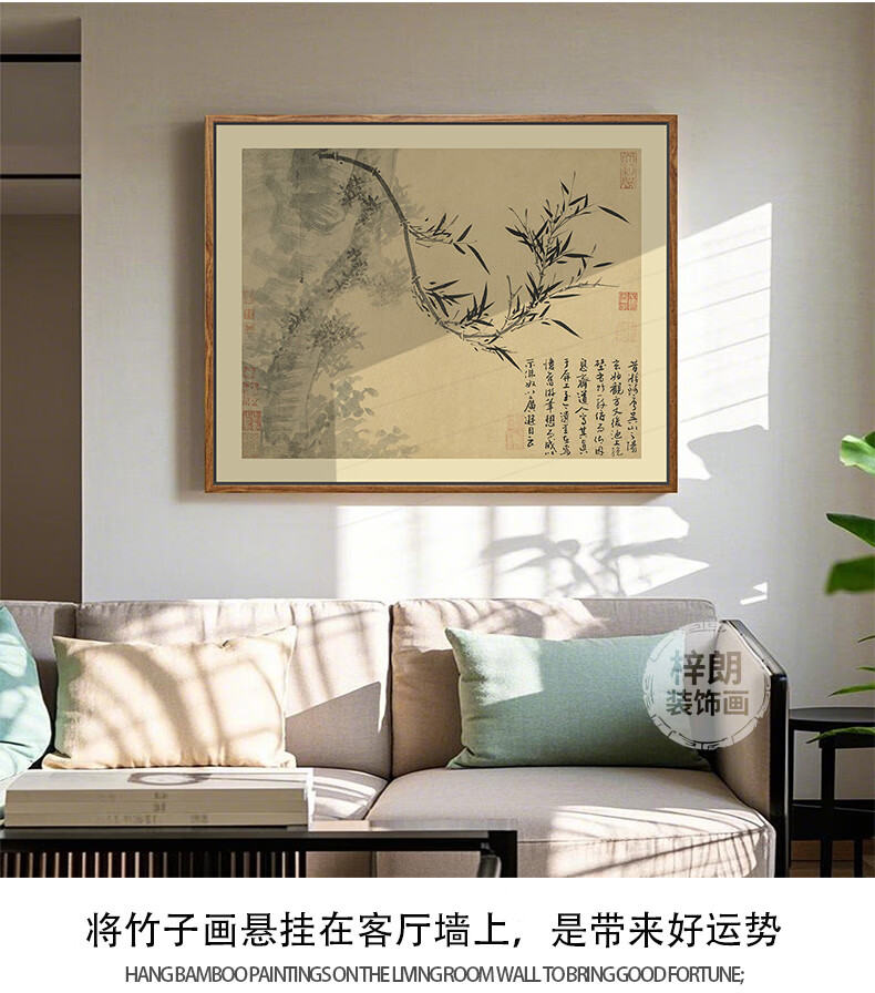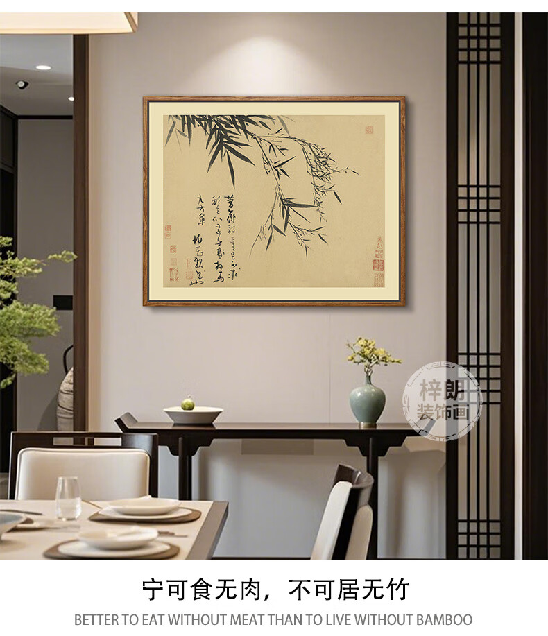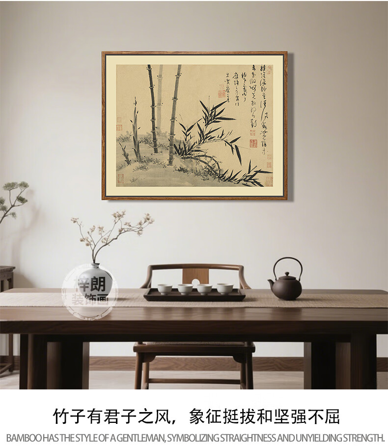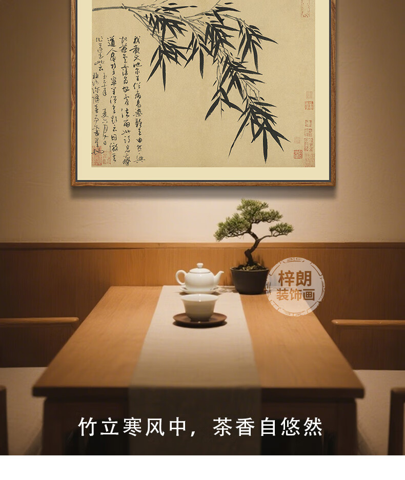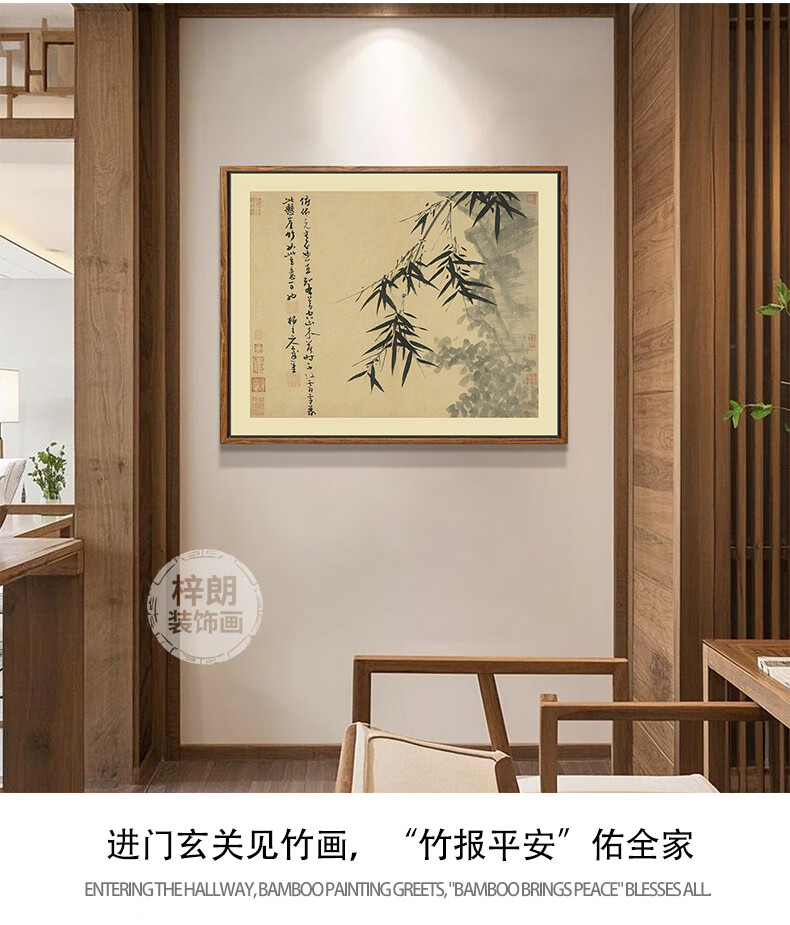 Zilang New Chinese Style Bamboo Hanging Painting Ink Calligraphy Living Room Tea Room Background Wall Mural Office Dining Wall Decoration Painting 02 60*75cm SF Wood Grain Yellow Frame (PS Frame) + Oil Canvas