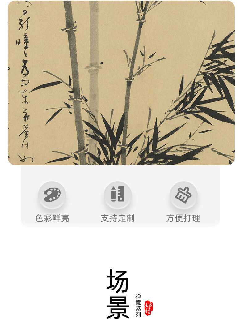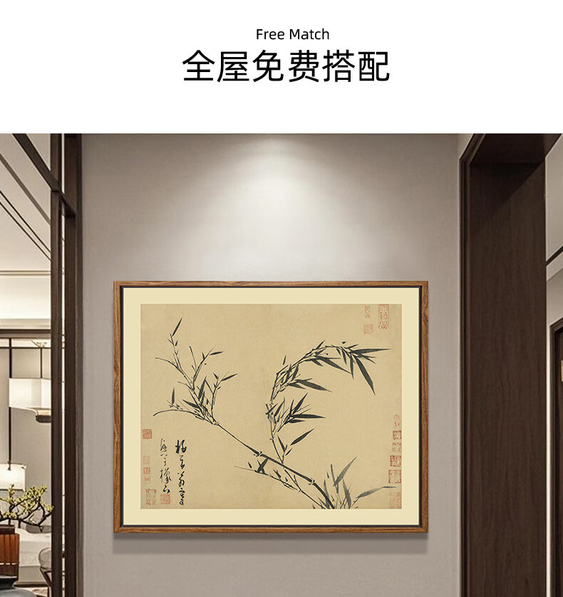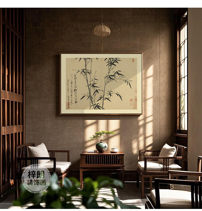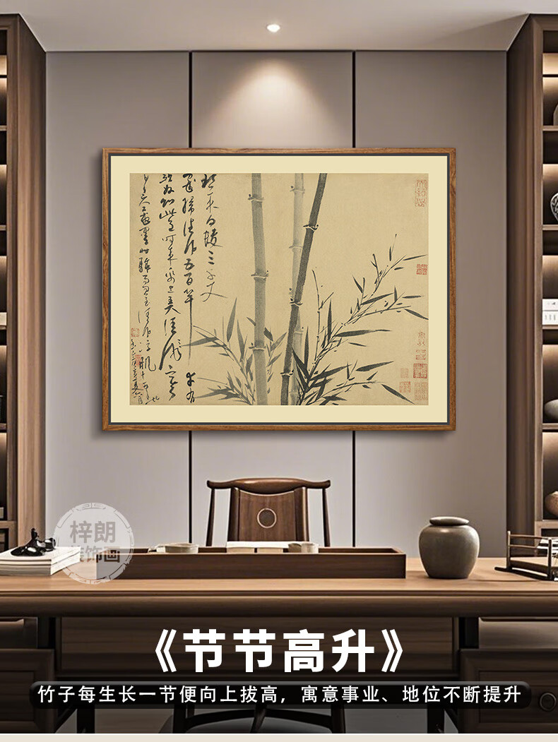 Zilang New Chinese Style Bamboo Hanging Painting Ink Calligraphy Living Room Tea Room Background Wall Mural Office Dining Wall Decoration Painting 02 60*75cm SF Wood Grain Yellow Frame (PS Frame) + Oil Canvas