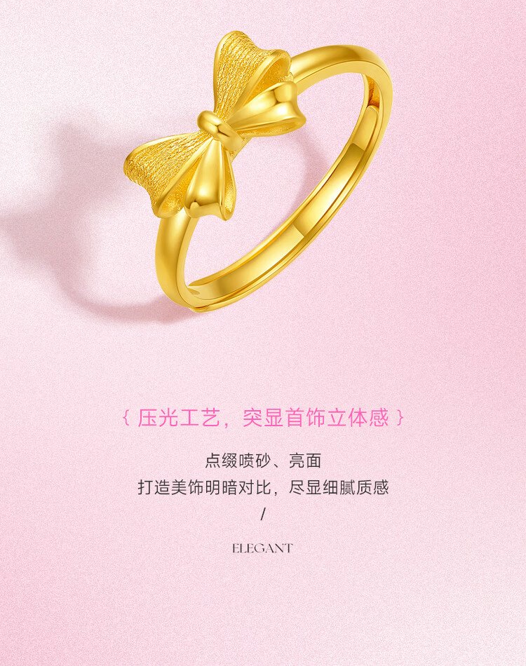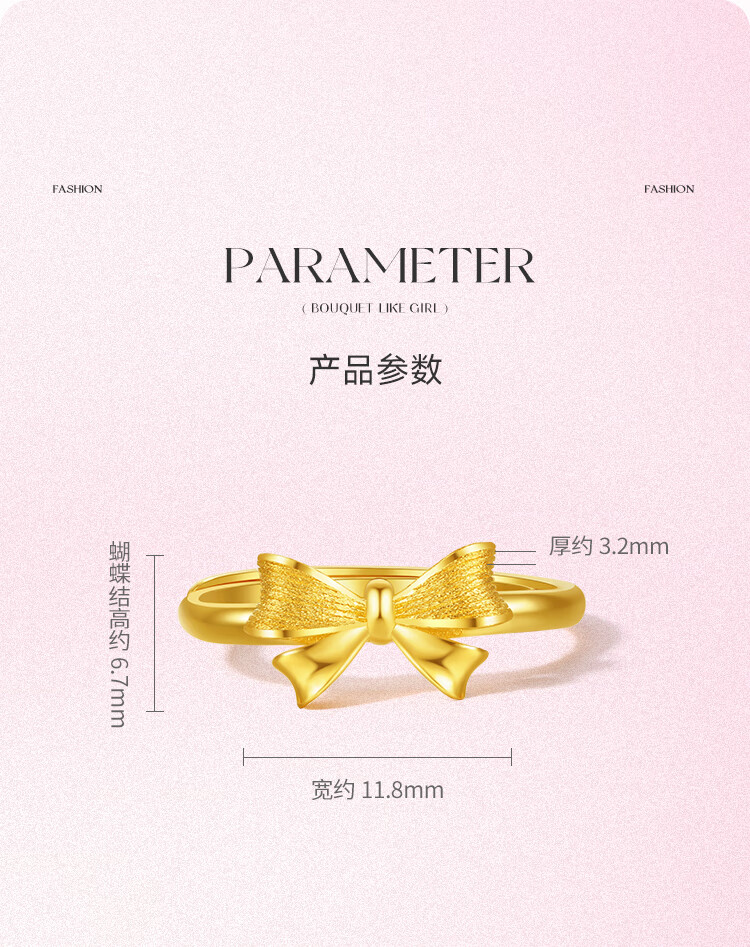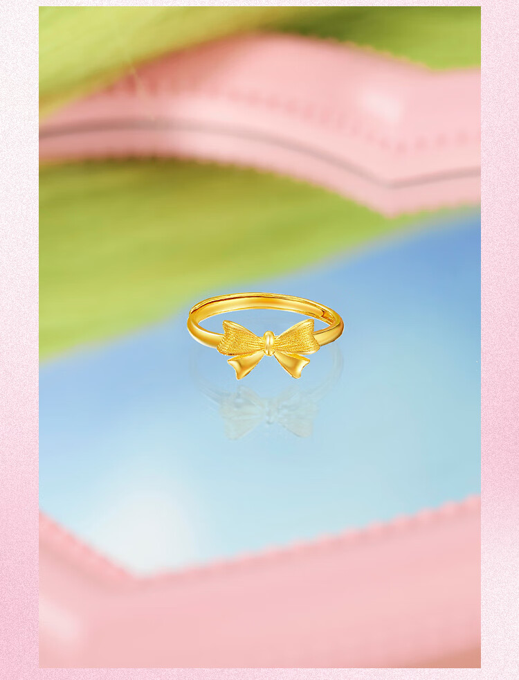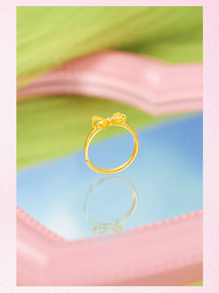Saturday Fortune (ZLF) Gold Ring Women's Pure Gold Bow Ring Gentle Girly Heart Price No. 13-2.83g