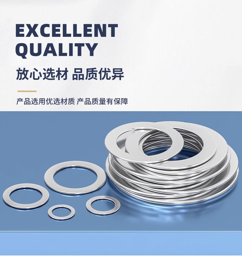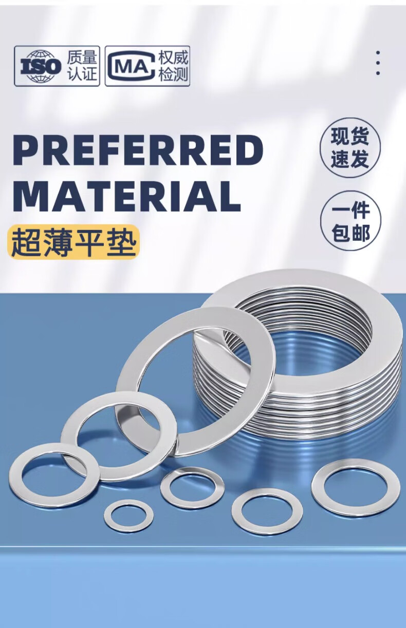 Fengji 304 stainless steel ultra-thin round gasket thick gap flat gasket thin metal gasket 0.1/0.2/0.3/0.5mm M12*20*0.2-80 pieces