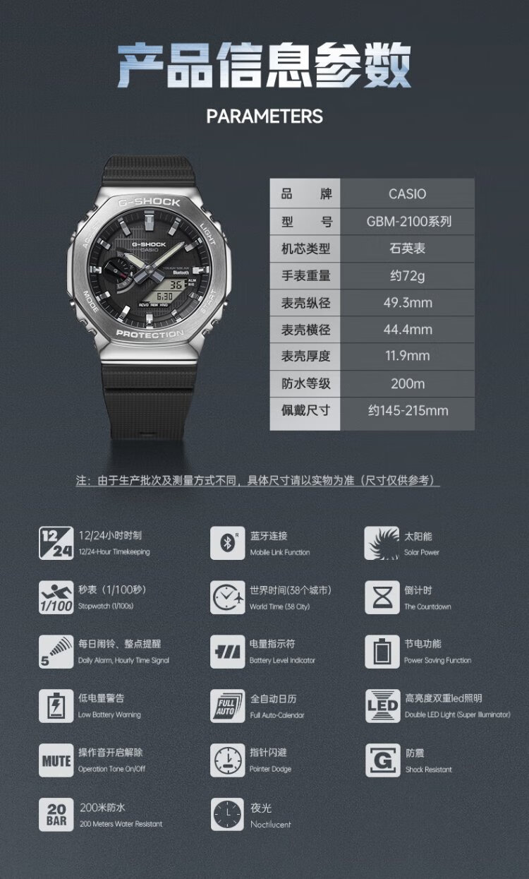 Casio (CASIO) G-SHOCK GBM-2100 Hachioji Waterproof Sports Solar Watch Student Watch Gift GBM-2100-1APR Ink Black