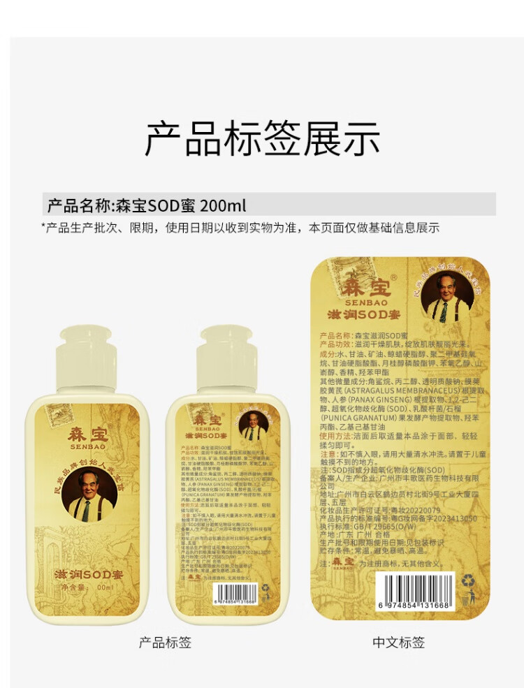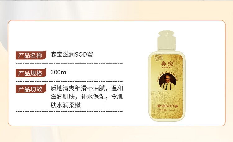 Senbao flagship moisturizing SOD honey 200ml refreshing moisturizing face cream skin care body lotion old classic domestic product Senbao sod honey 1 bottle